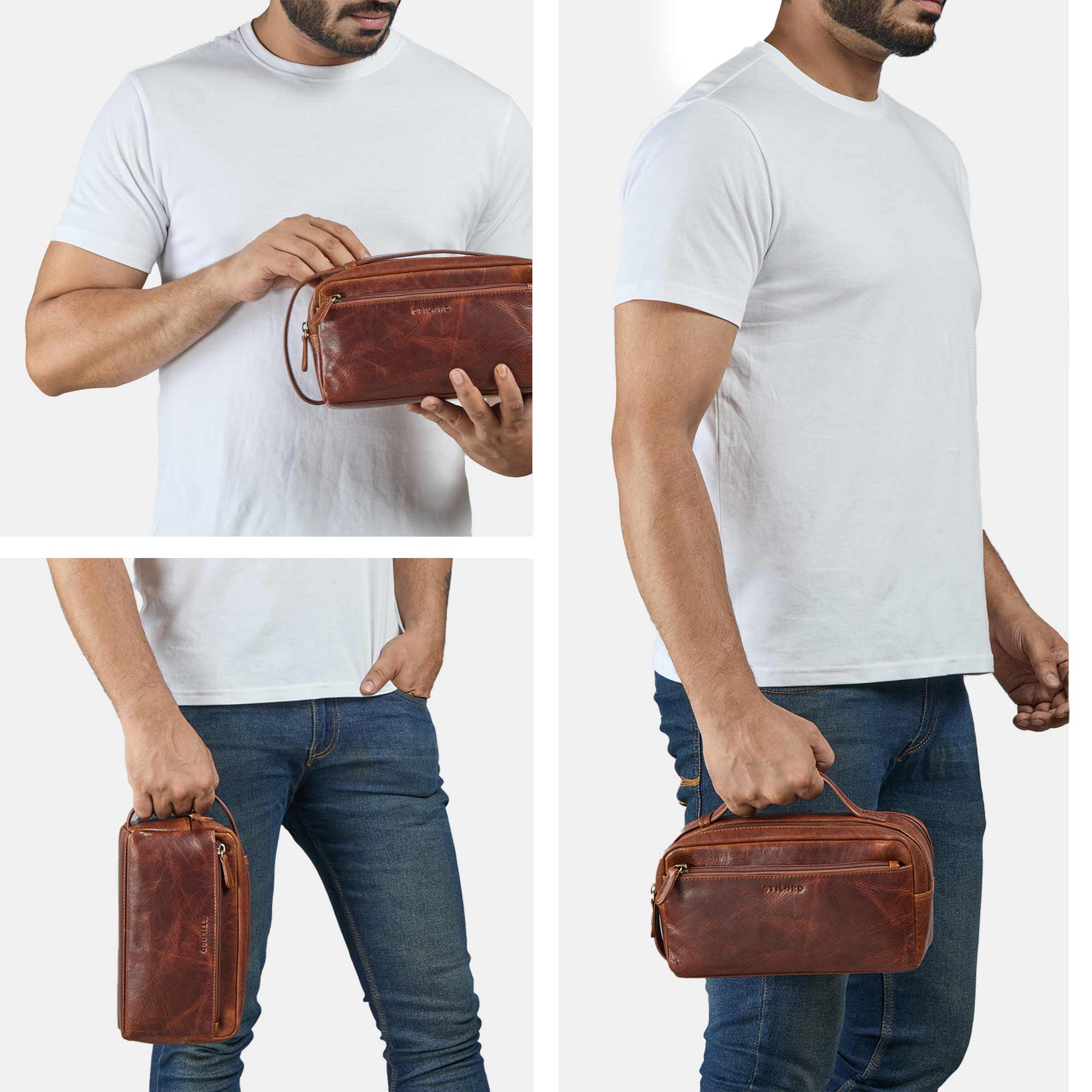 - MULTIFUNKTIONAL: Als Handgelenktasche, Clutch Bag, Handytasche Herren Leder, Handtasche Männer mit vielen Fächern oder Reiseetui – ein smarter Organizer für Arbeit, Stadt oder Urlaub. Vintage Herrenhandtasche kompakt für den täglichen Gebrauch.