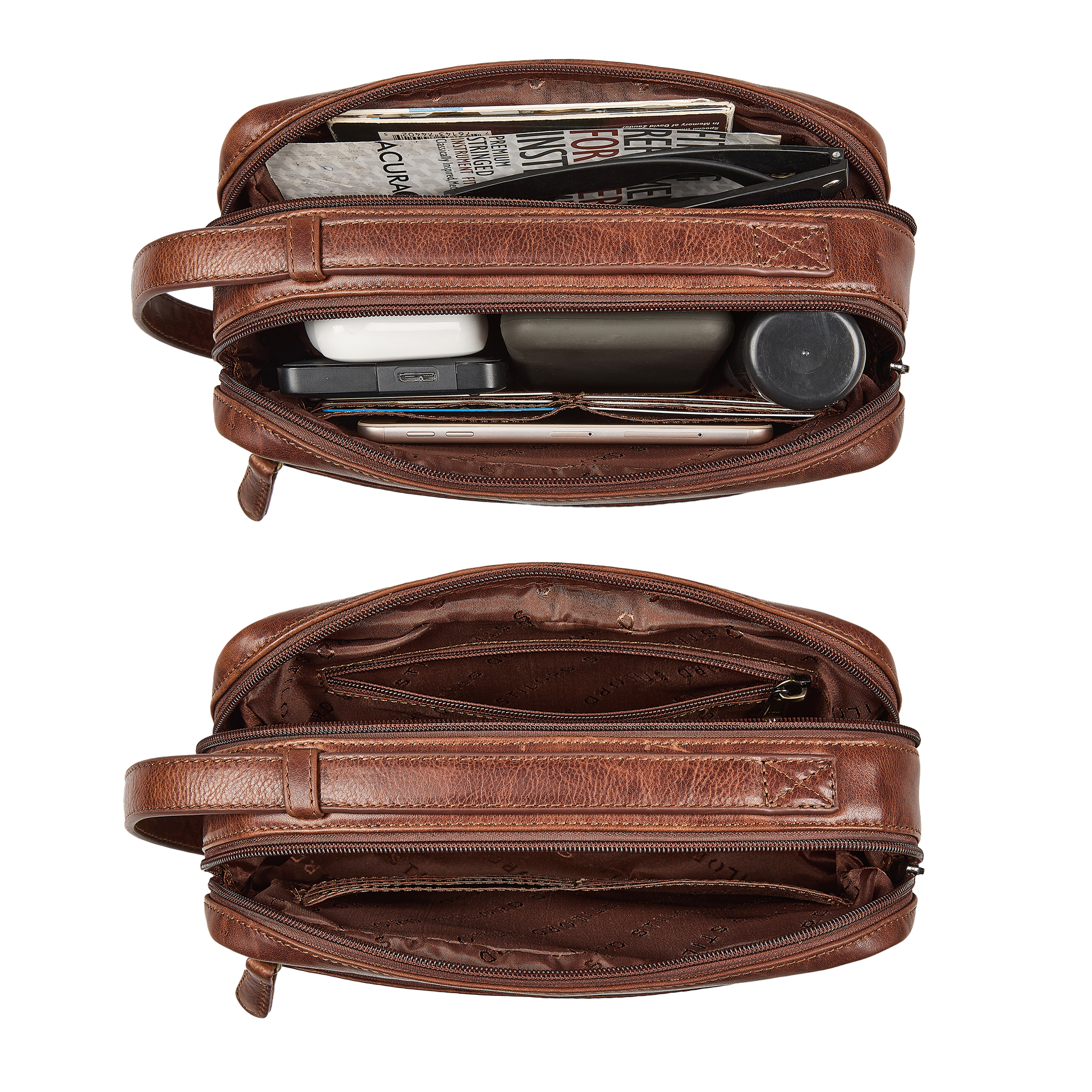 - PRAKTISCHER STAURAUM: 2 Hauptfächer mit leichtgängigen Metallreißverschlüssen, 6 Kartenfächer, 1 Reißverschluss & 1 Einsteckfach innen – ideale Männerhandtasche für Smartphone, Geldbörse, Ladekabel, Schlüssel und Reisedokumente.