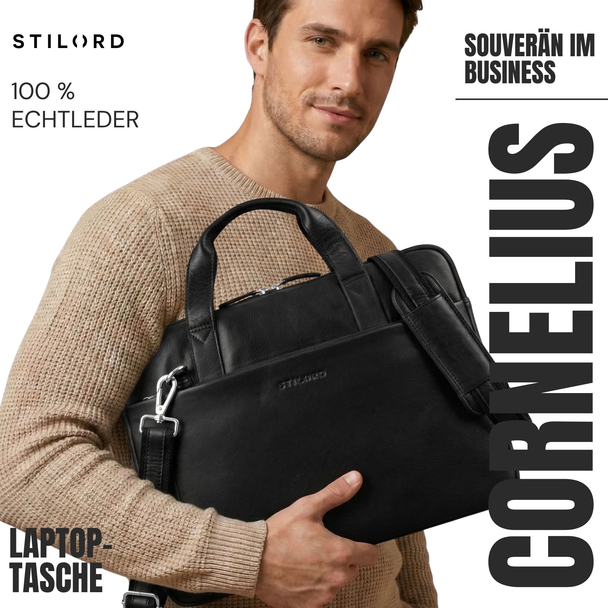 STILORD Cornelius Schmale Laptoptasche Leder Herren 15–16 Zoll mit Schultergurt