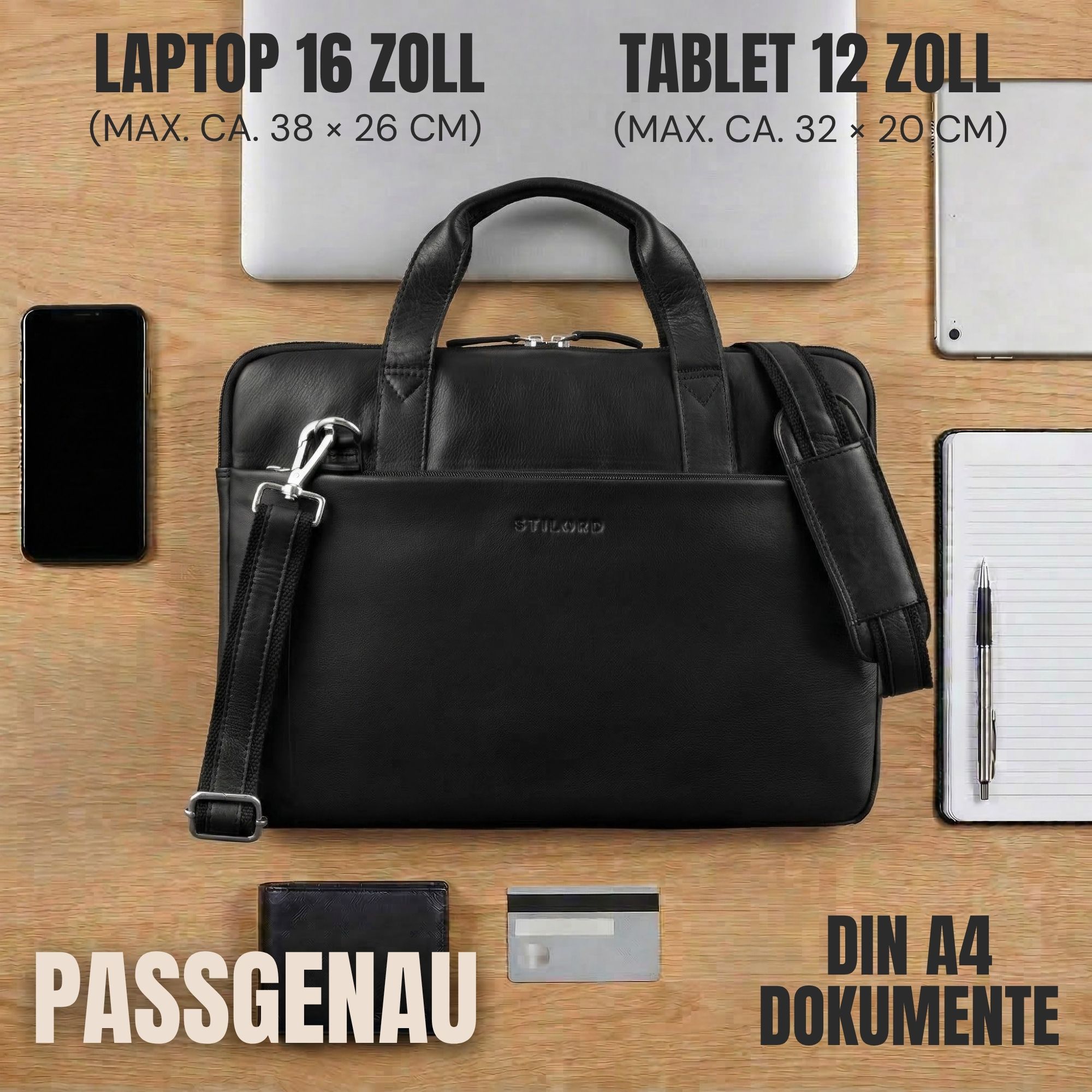 - DETAILS: Maße (LxBxH) ca. 40 x 3 x 29 cm | Gewicht ca. 850 g | Material: Rindsleder | Marke: STILORD | Modell: "Cornelius" | Geeignet für 15, 15.6 und 16 Zoll und 11 Zoll Tablet