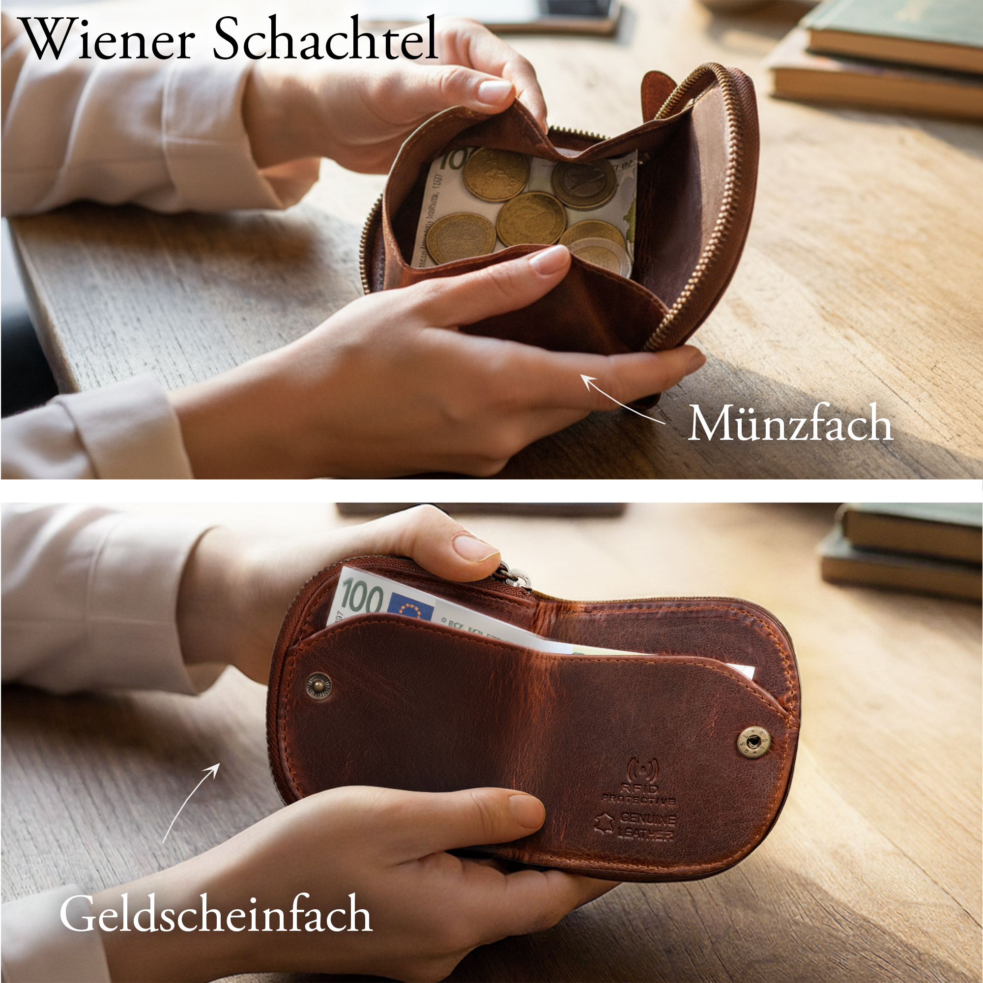 - Aufklappbares Münzfach für perfekte Übersicht | Umlaufender Reißverschluss für schnellen und sicheren Zugang