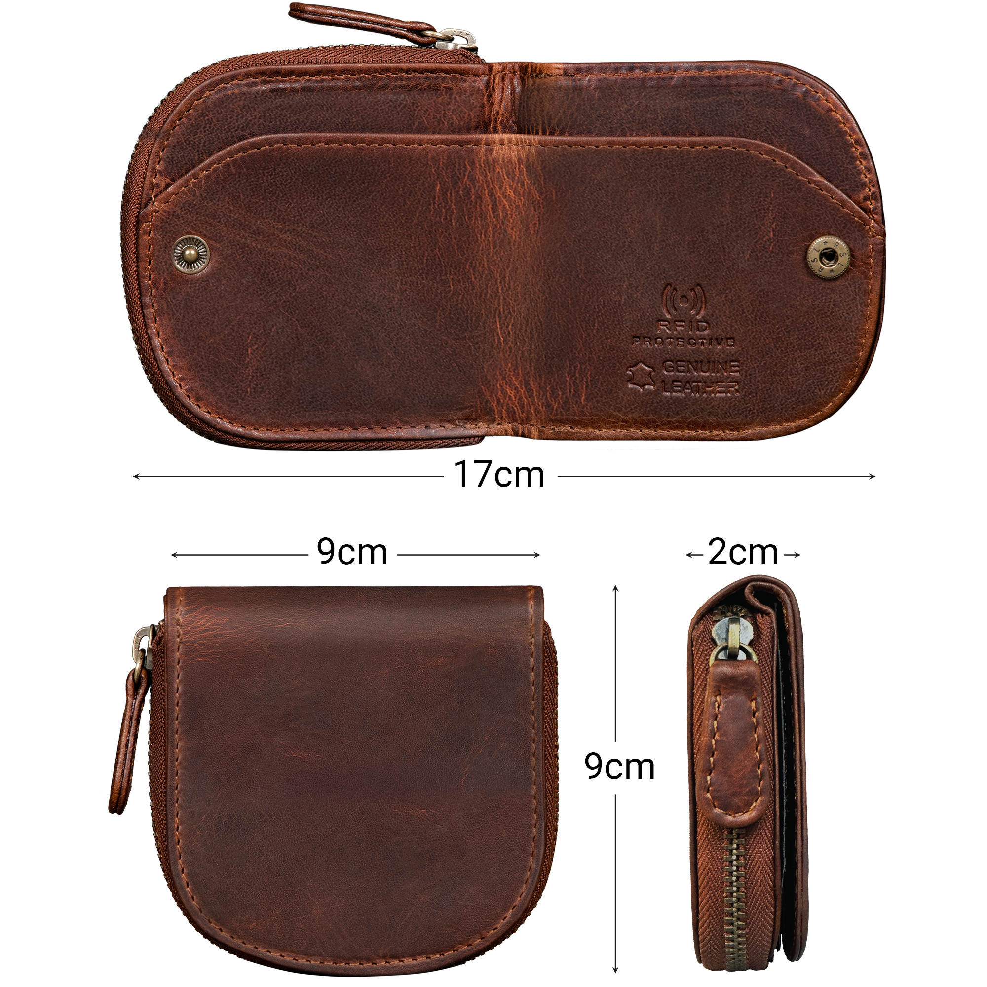 - AUF EINEN BLICK: Maße (LxBxH): 9 x 2 x 9 cm (geöffnet ca. 17 cm) | Gewicht: 80 g | Material: echtes Rindsleder