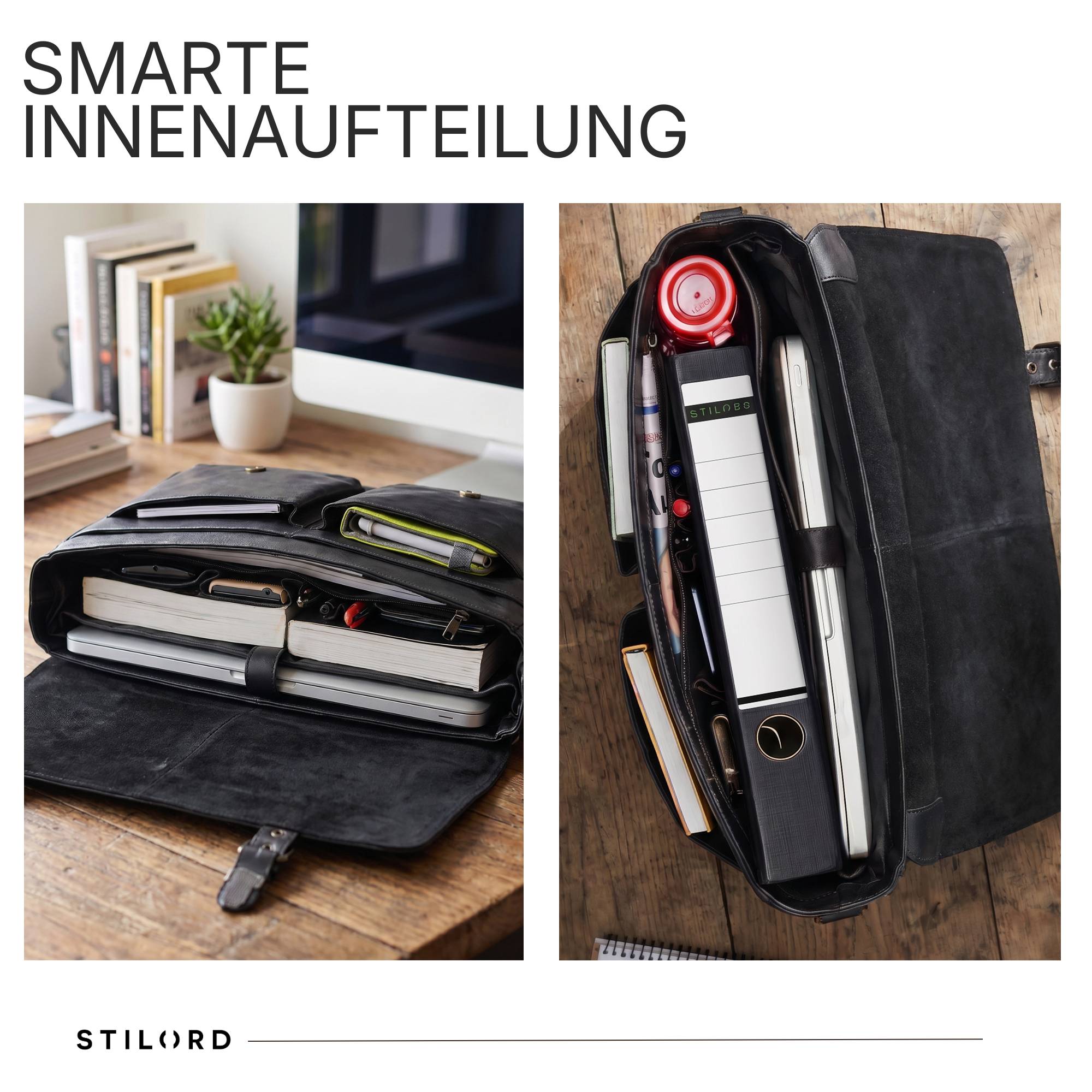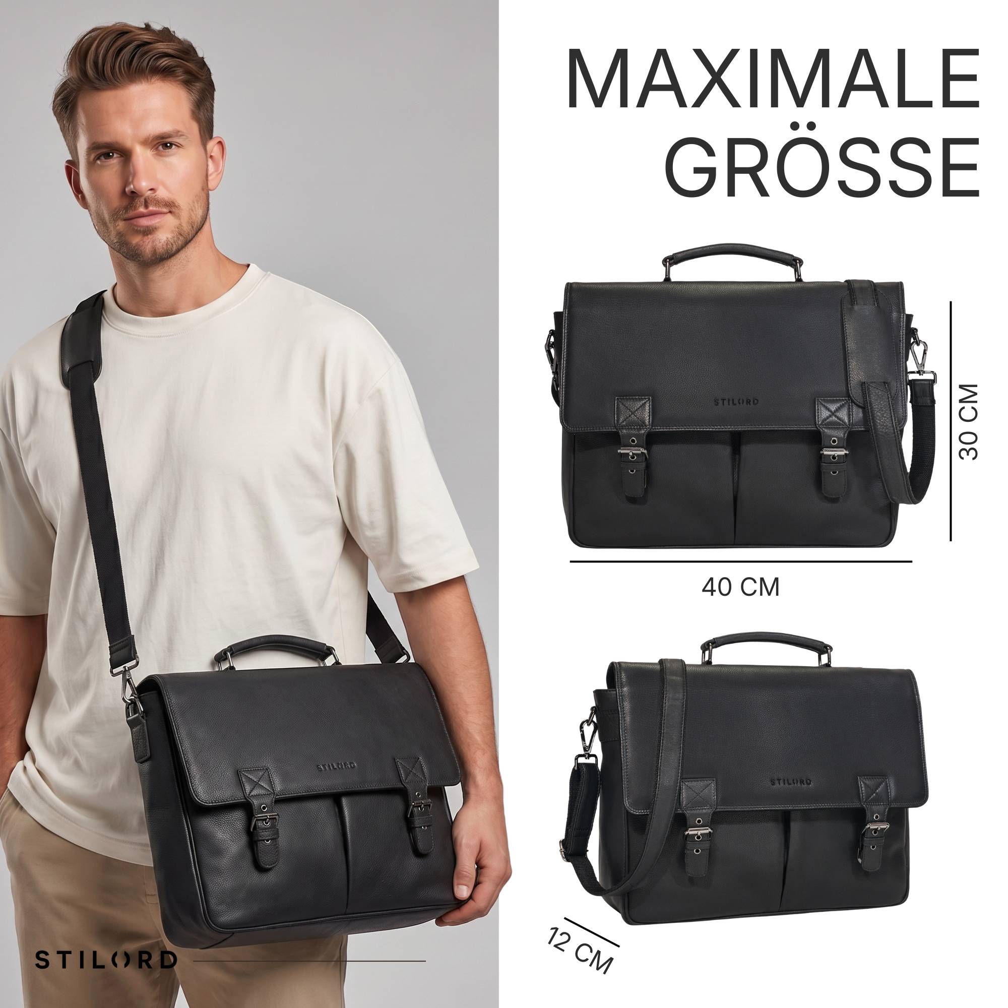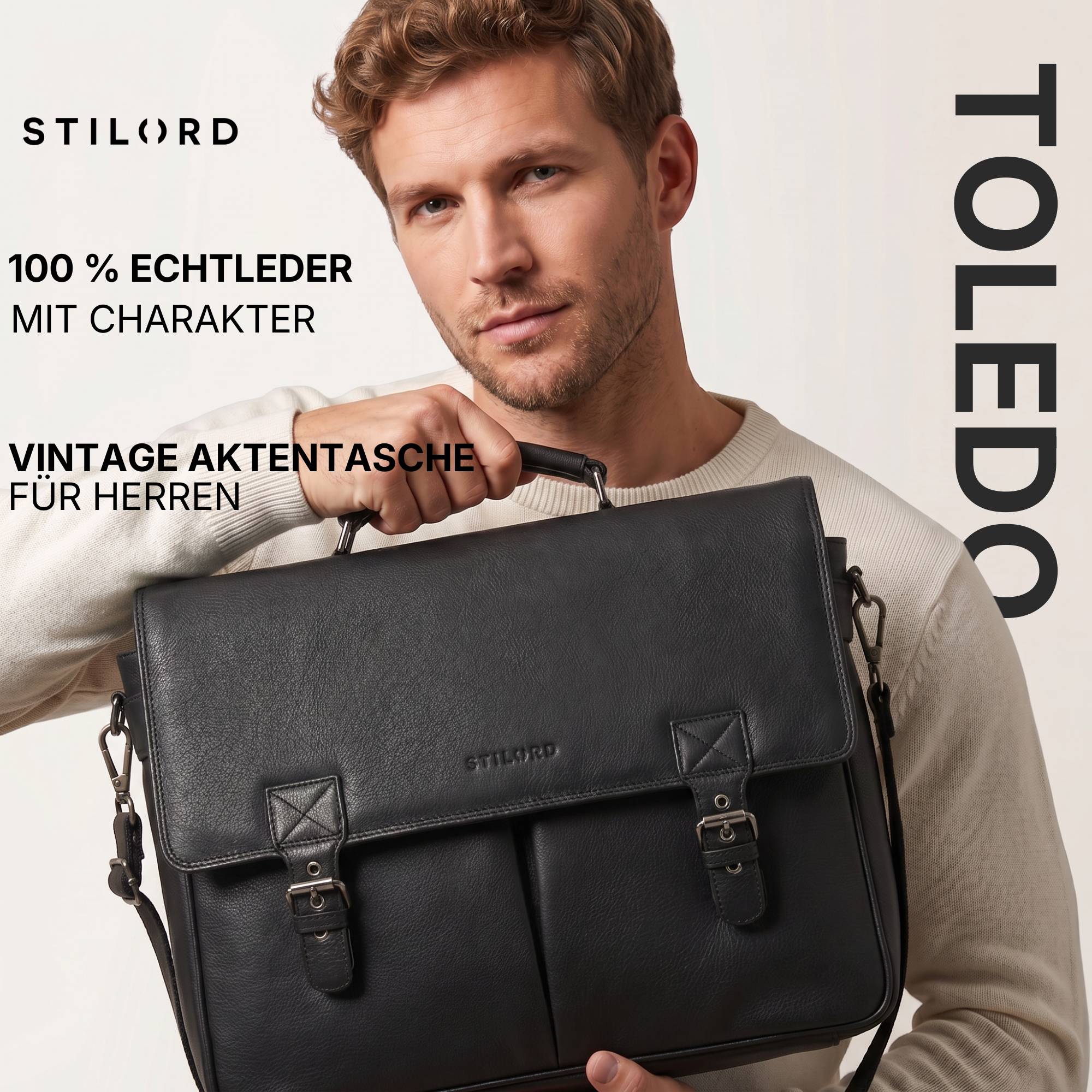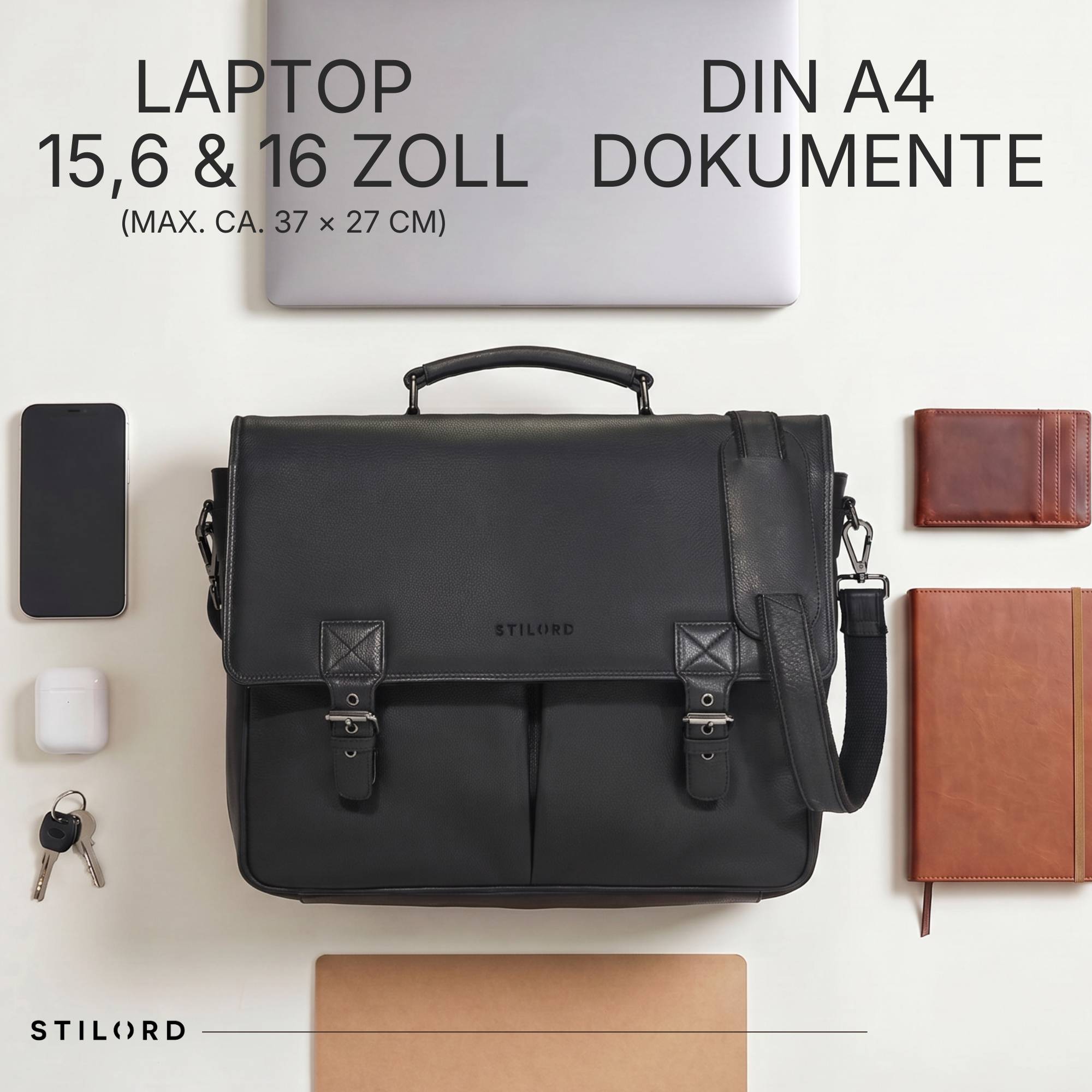 • DETAILS: Maße: ca. 40 x 12 x 30 cm | Gewicht: 1900 g | Modell: "Toledo" | Material: echtes Rindsleder | Marke: STILORD | Kompabilität: Laptops bis 15,6 Zoll oder 16 Zoll MacBook (37 x 27 cm)