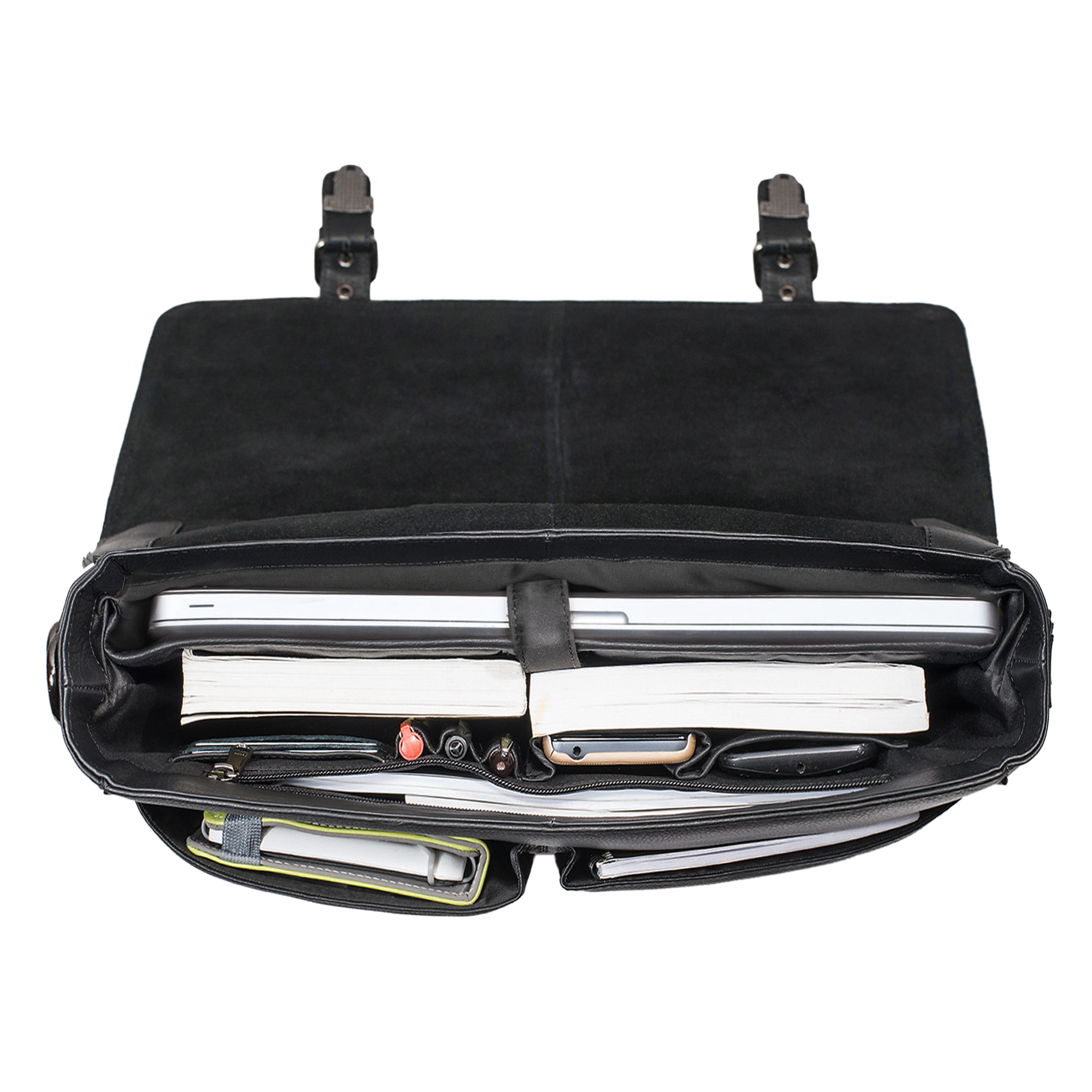 - Sicherer Verschluss: Aktentasche Herren Leder groß mit Überschlag & mit zwei robusten Schnallen