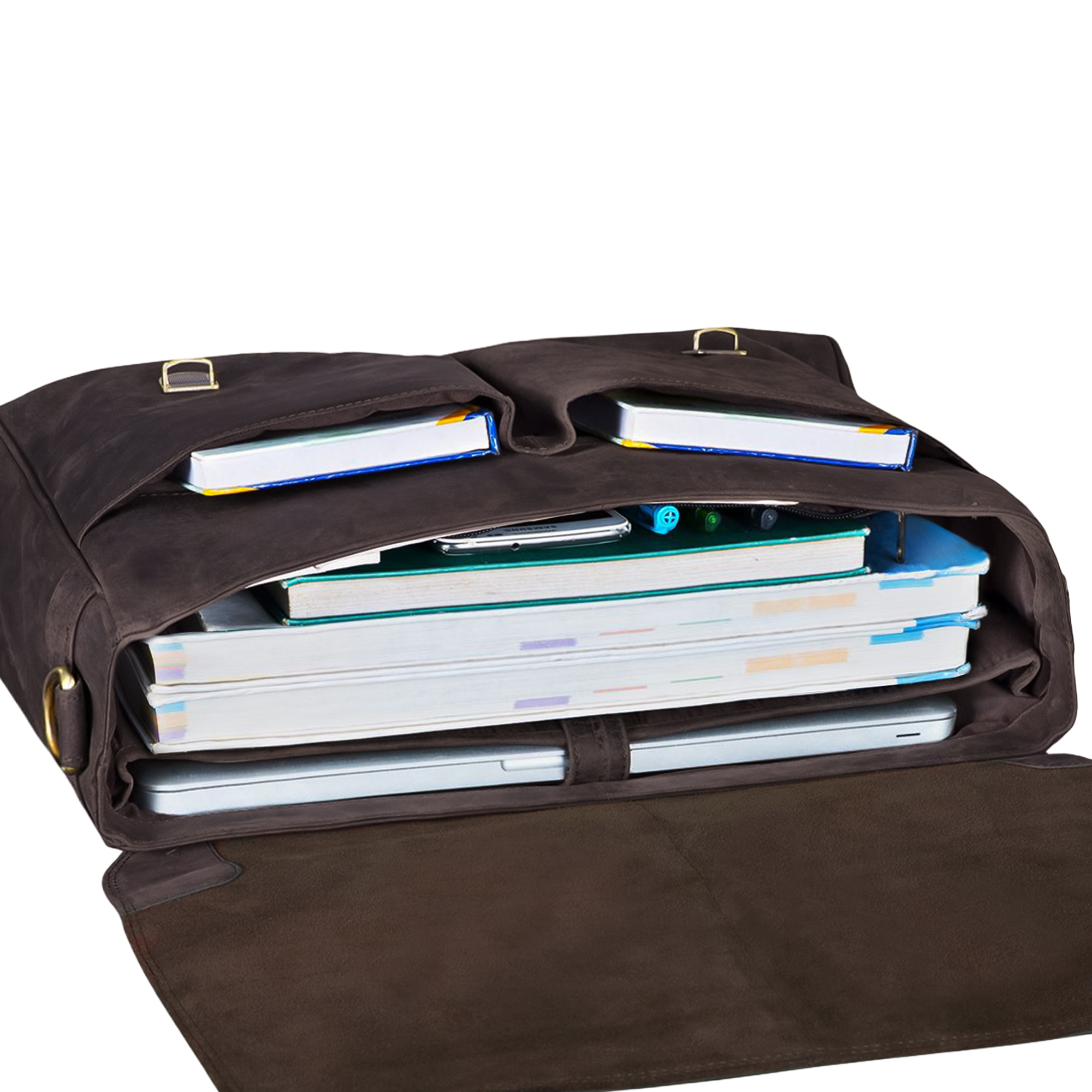 - Sicherer Verschluss: Aktentasche Herren Leder groß mit Überschlag & mit zwei robusten Schnallen