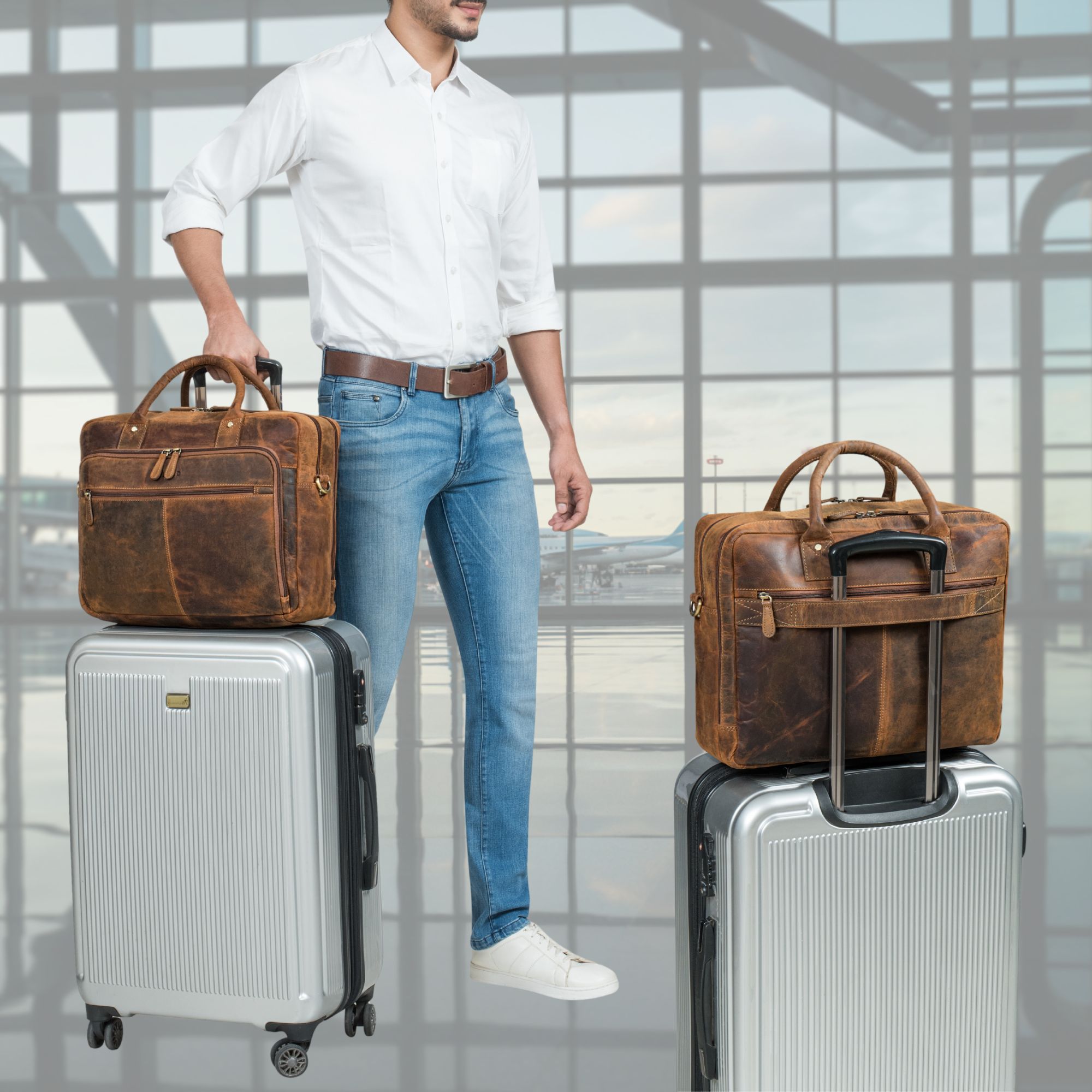 - Höchster Tragekomfort: Herren Arbeitstasche Leder mit Henkeln und abnehmbarem, verstellbarem Schultergurt (80–130 cm) - Bürotasche mit Extra Gurtpolsterung für komfortables Tragen