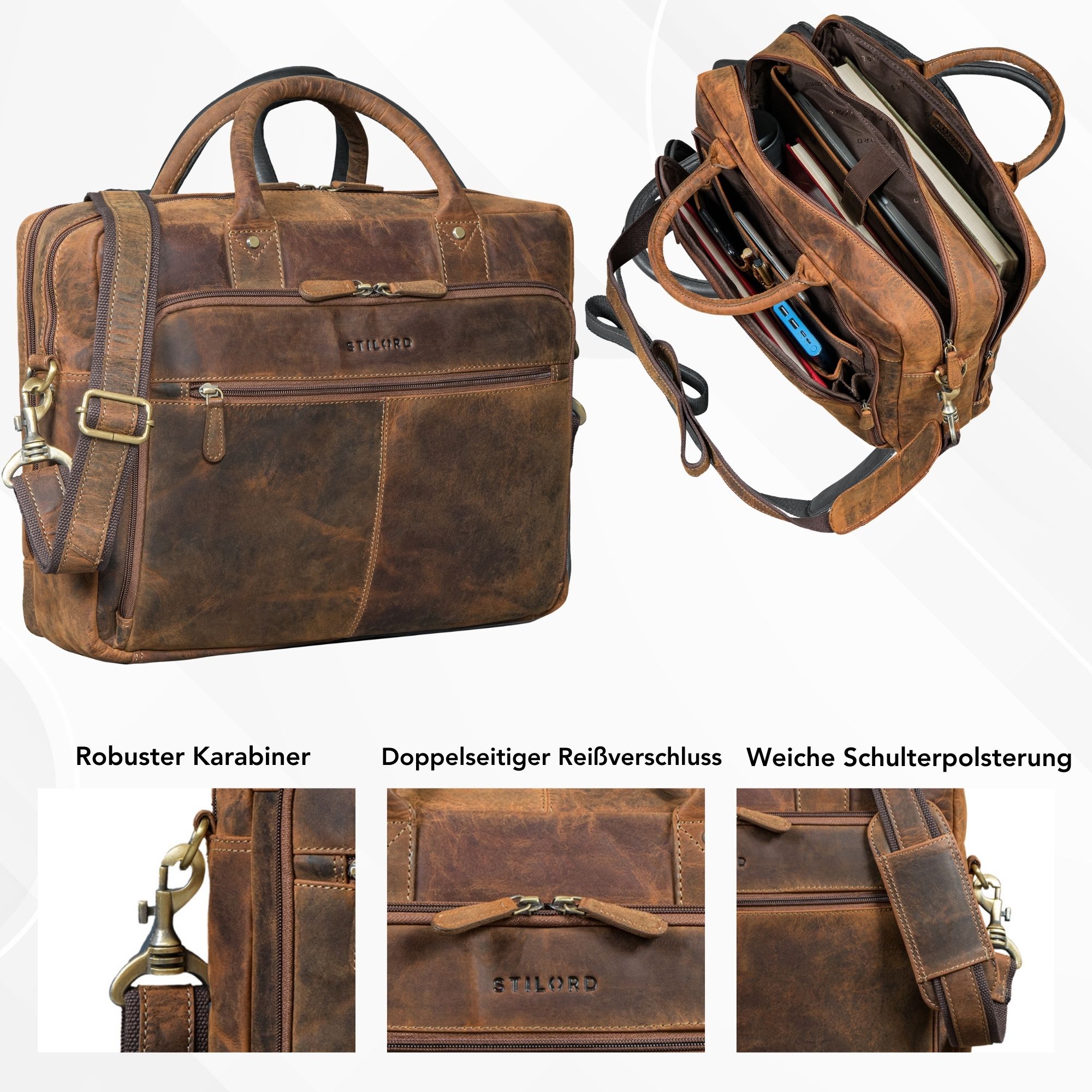 STILORD "Jerome" Leder Aktentasche Herren Eleganz & Organisation in Echtleder