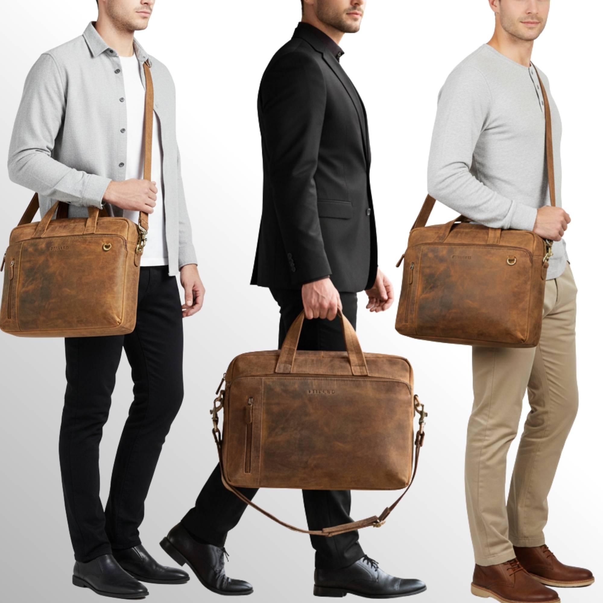 Alles auf einen Blick "Ramon" Große Laptop Aktentasche Leder Herren ideal für Ihren Business Alltag
