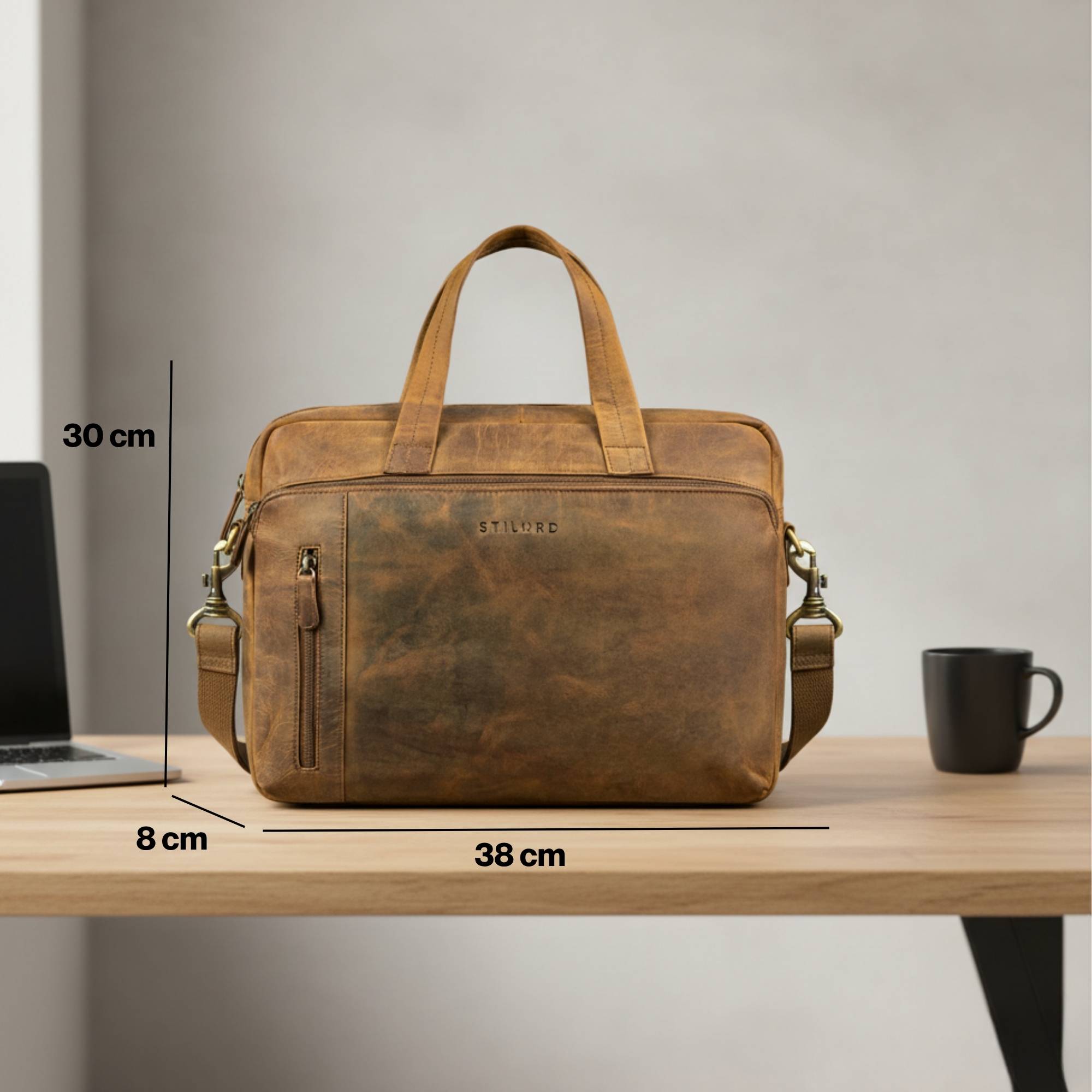 - Maße: 38 x 8 x 30 cm | Gewicht 1230 g, schlanke Ledertasche mit großzügigem Stauraum für Dokumente