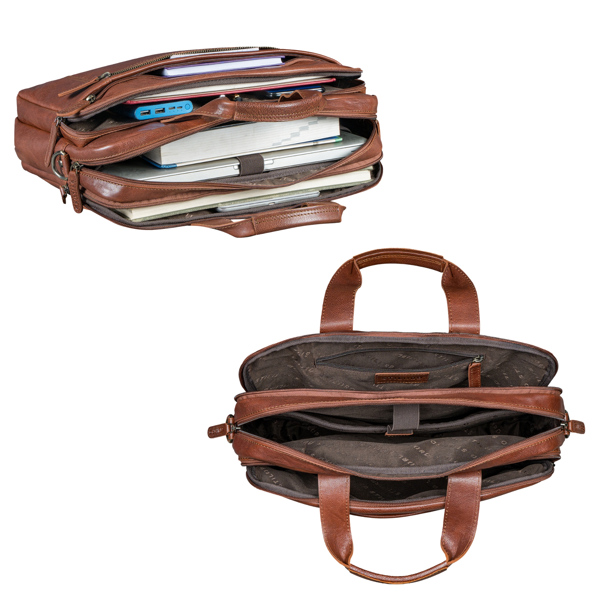 • Maße (LxBxH): ca. 39 x 12 x 30 cm | Gewicht: 1300 Gramm | Rindsleder |  Laptopfach für 15 | 15.3 und 15.6 Zoll Laptop und Macbook (max. 37 x 27 cm), breite DIN A4 Akten-Ordner