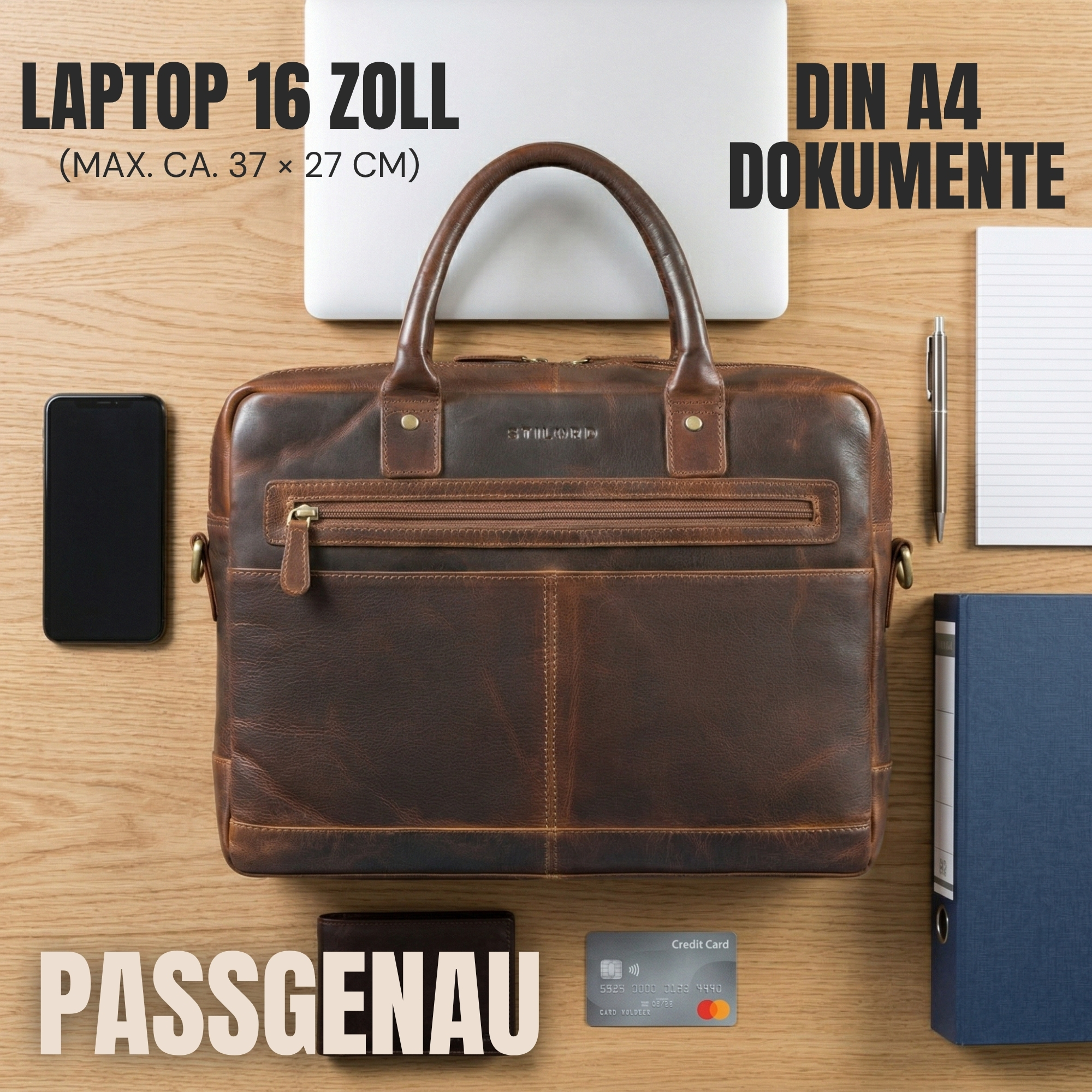 - MEHR PLATZ, MEHR ORDNUNG: Die Laptoptasche Leder Herren bietet großzügigen Stauraum für Laptop, DIN-A4-Ordner, Dokumente, Zubehör und persönliche Essentials – alles bestens organisiert an einem Platz.