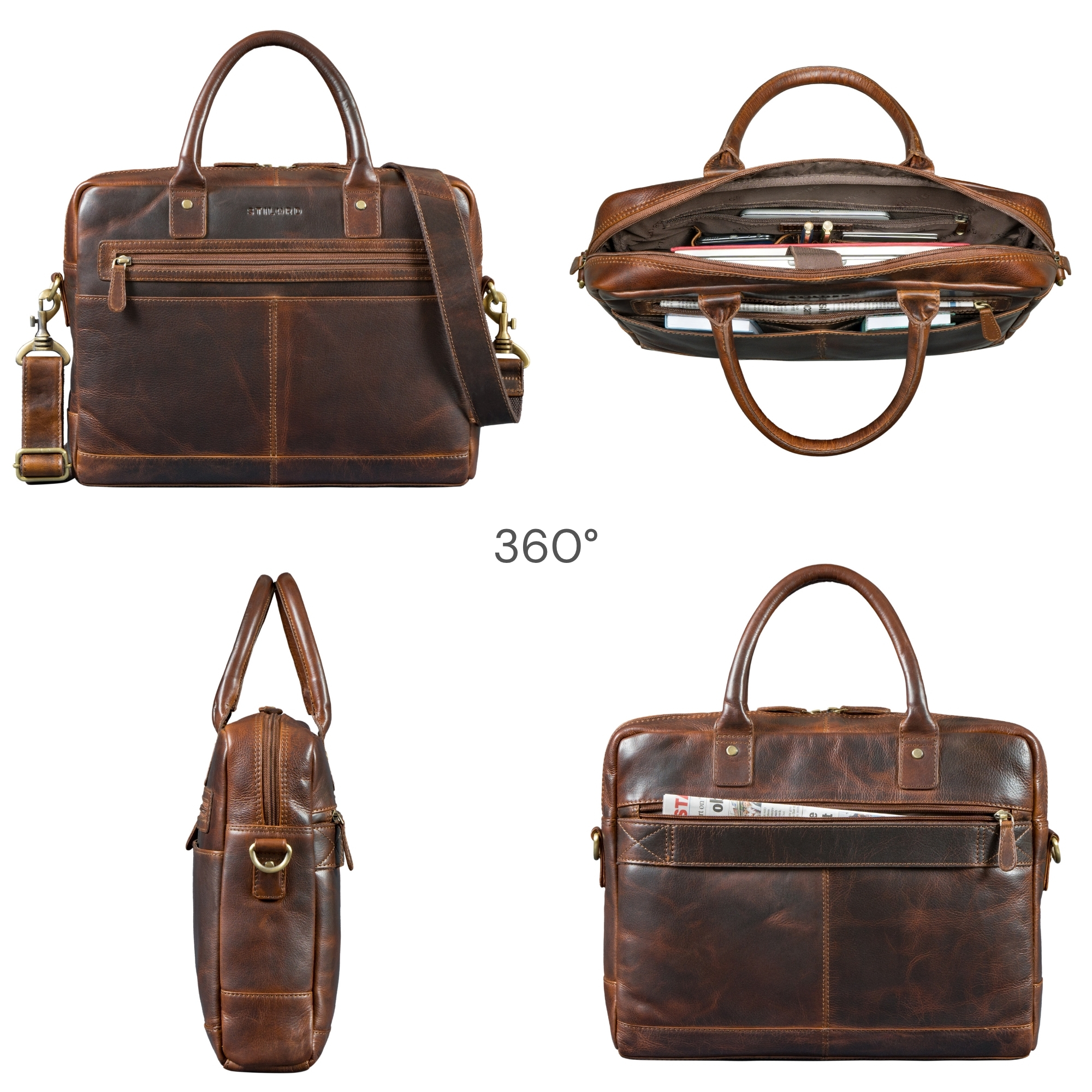 - FLEXIBEL UNTERWEGS: Ob in der Hand, über der Schulter oder auf dem Trolley – die Leder Notebooktasche passt sich jeder Situation an. Abnehmbarer, verstellbarer Schultergurt, stabile Tragegriffe und Trolley-Halterung garantieren Komfort und maximale Bewegungsfreiheit.