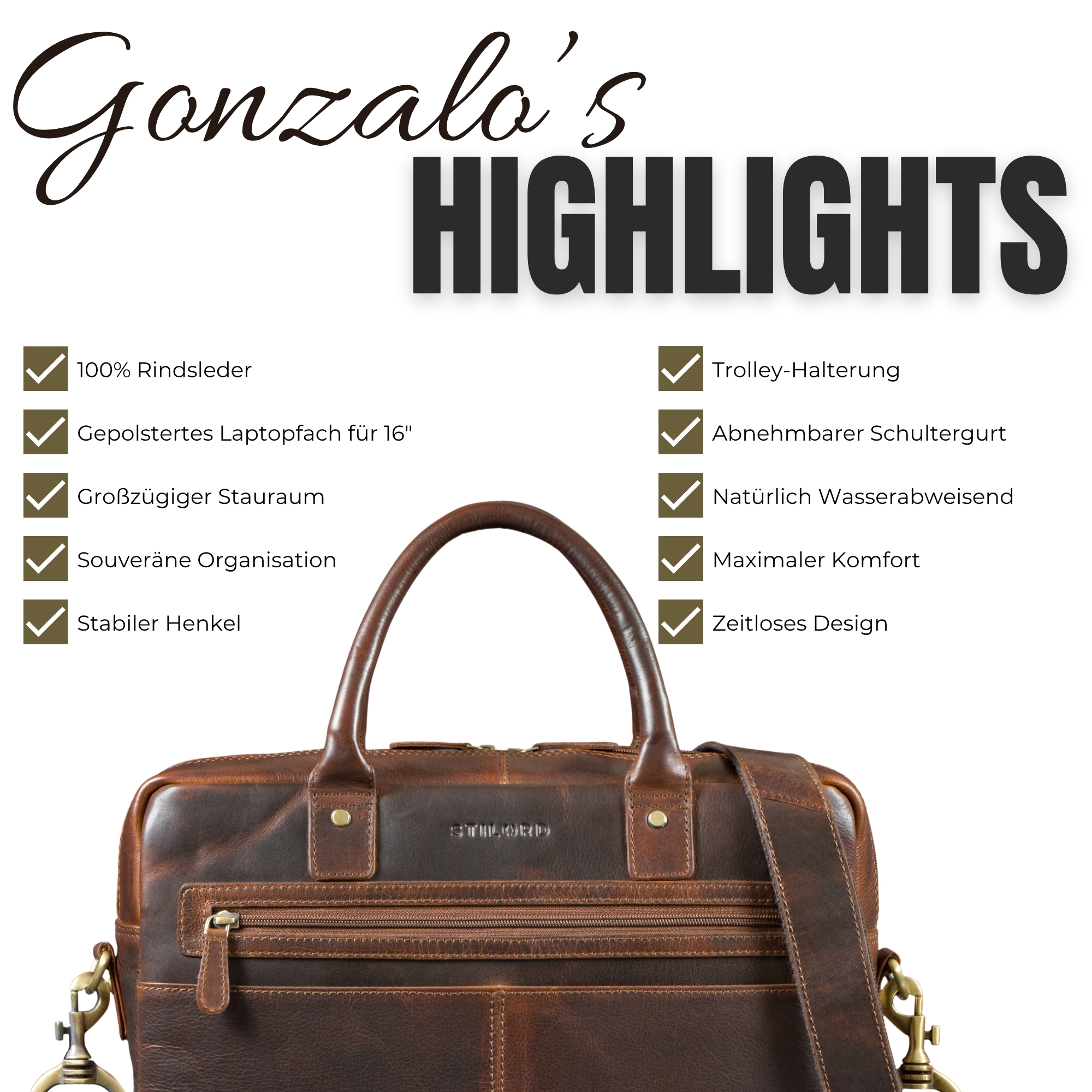 "Gonzalo" Business Aktentasche Herren Leder Groß Laptoptasche 15.6 bis 16 Zoll