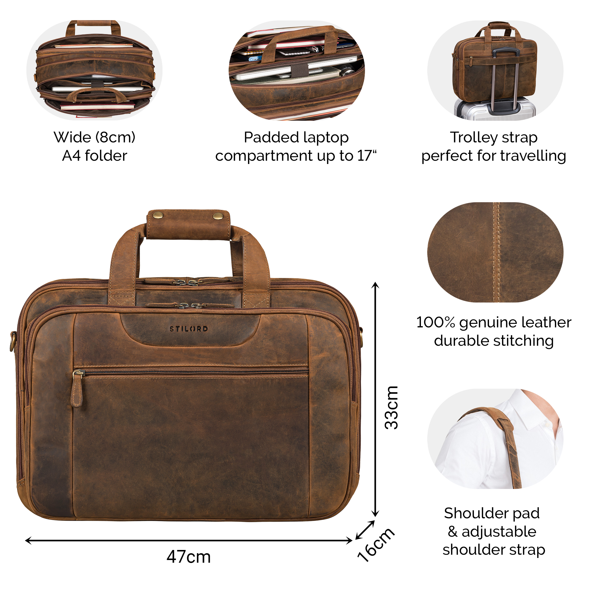 - DETAILS: Maße: 47 x 16 x 33 cm | Gewicht: 2005 g | Modell: Henrik | Material: echtes Rindsleder | Marke: STILORD | Kompatibilität: Laptop bis 17 Zoll (41 x 30 cm).