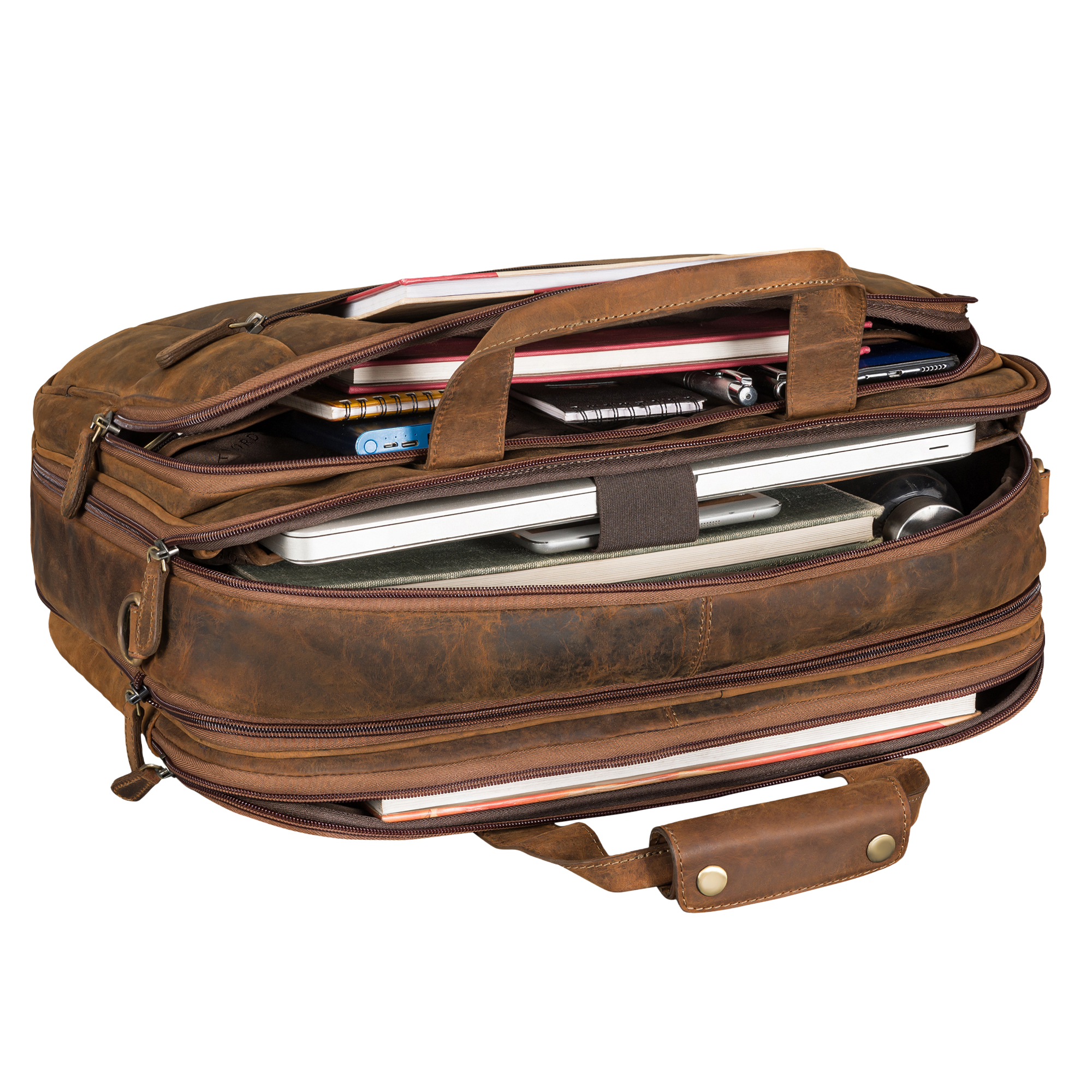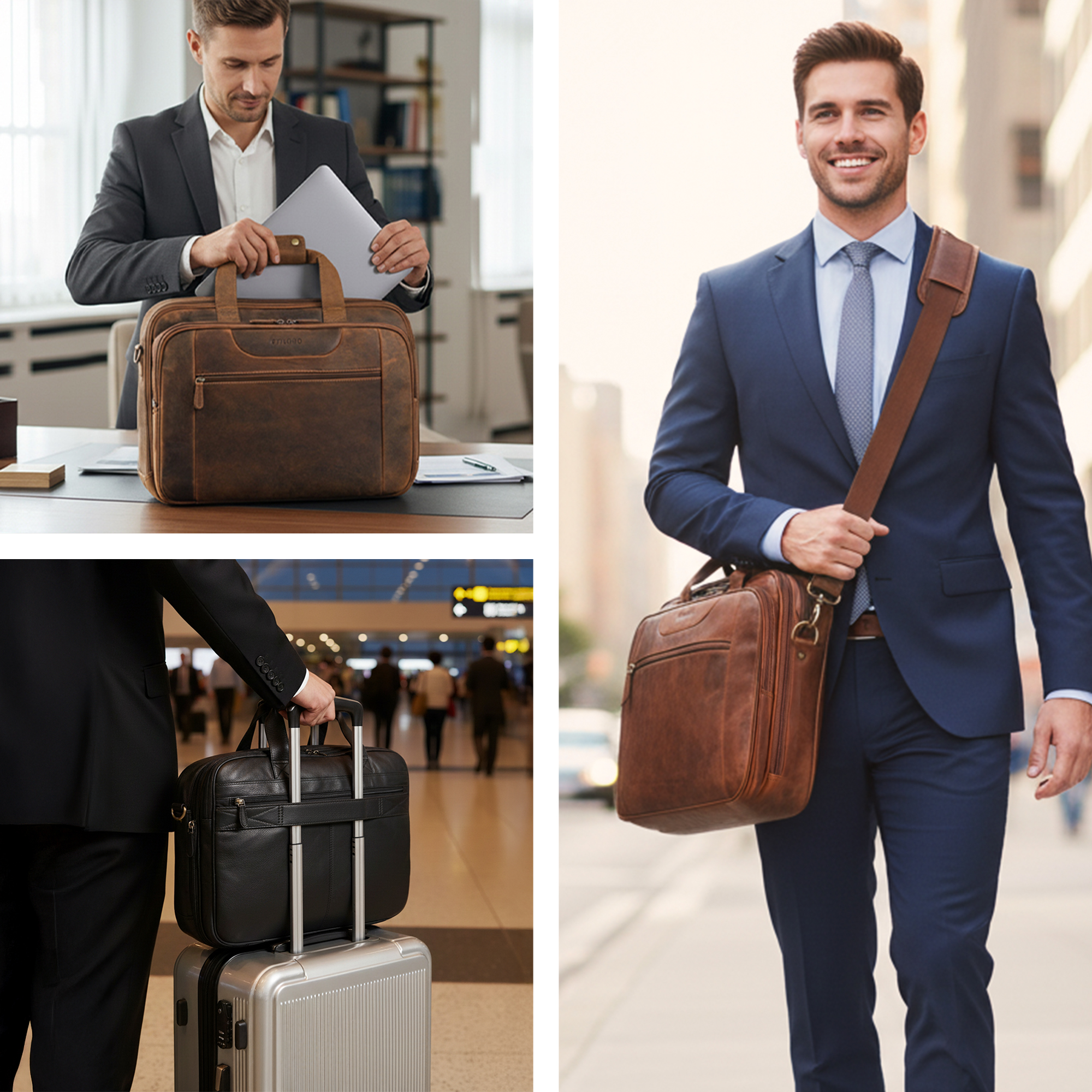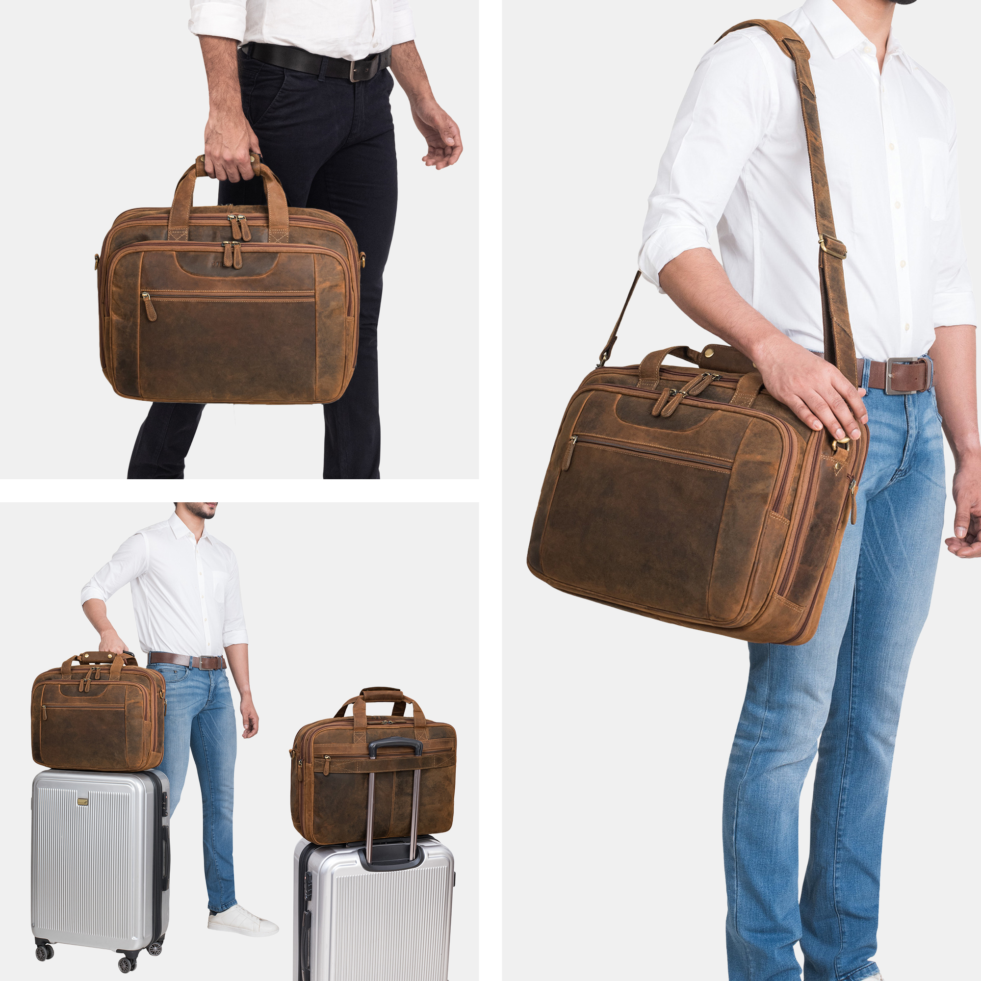 - MAXIMALER KOMFORT: Der verstell- und abnehmbare Schultergurt (75–135 cm), stabiler Tragegriff und Trolley-Gurt sorgen für flexibles Tragen – ob als Umhängetasche, Schultertasche oder klassische Leder Aktentasche.