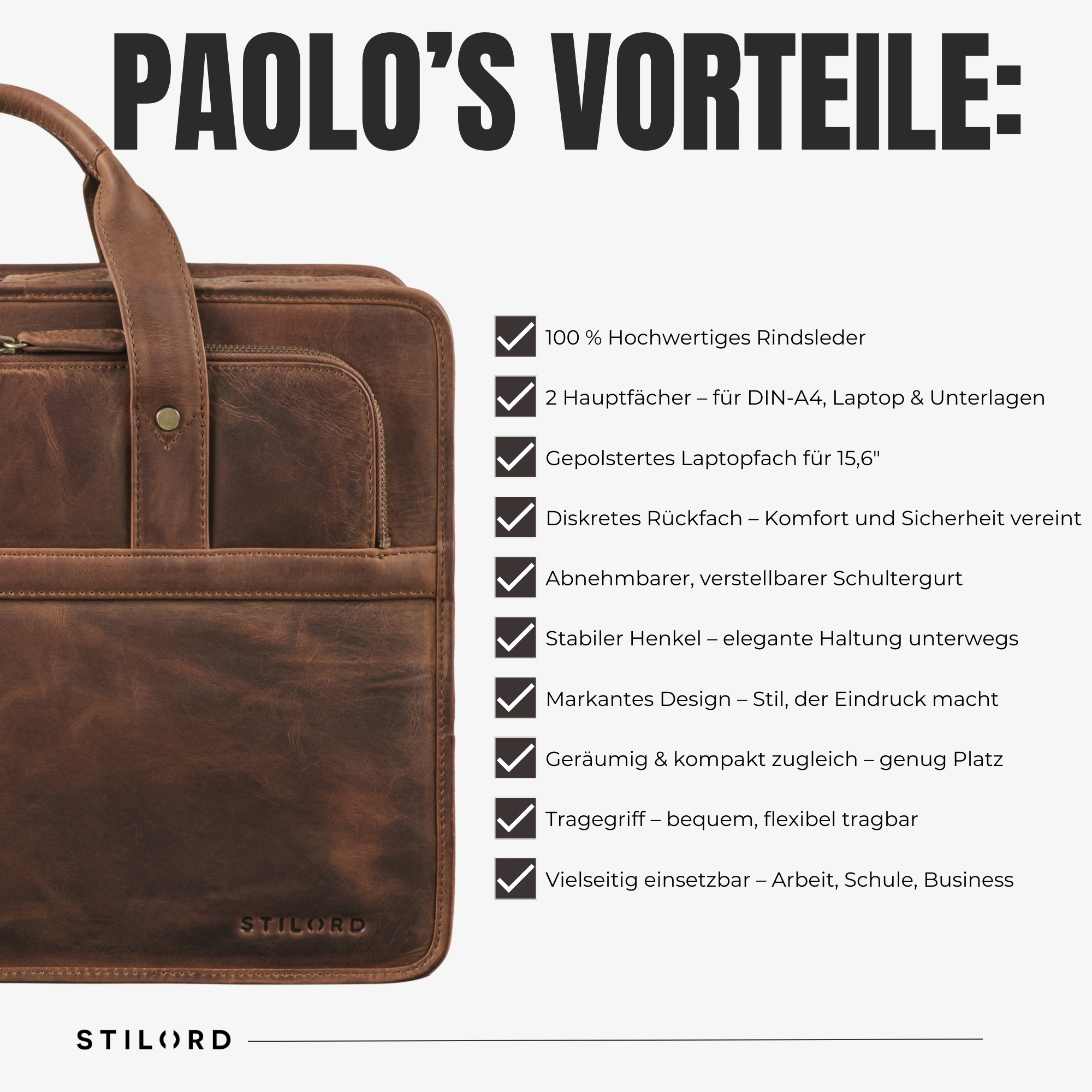 15,6 Zoll Laptoptasche Herren Leder "Paolo" – Alle Vorteile: