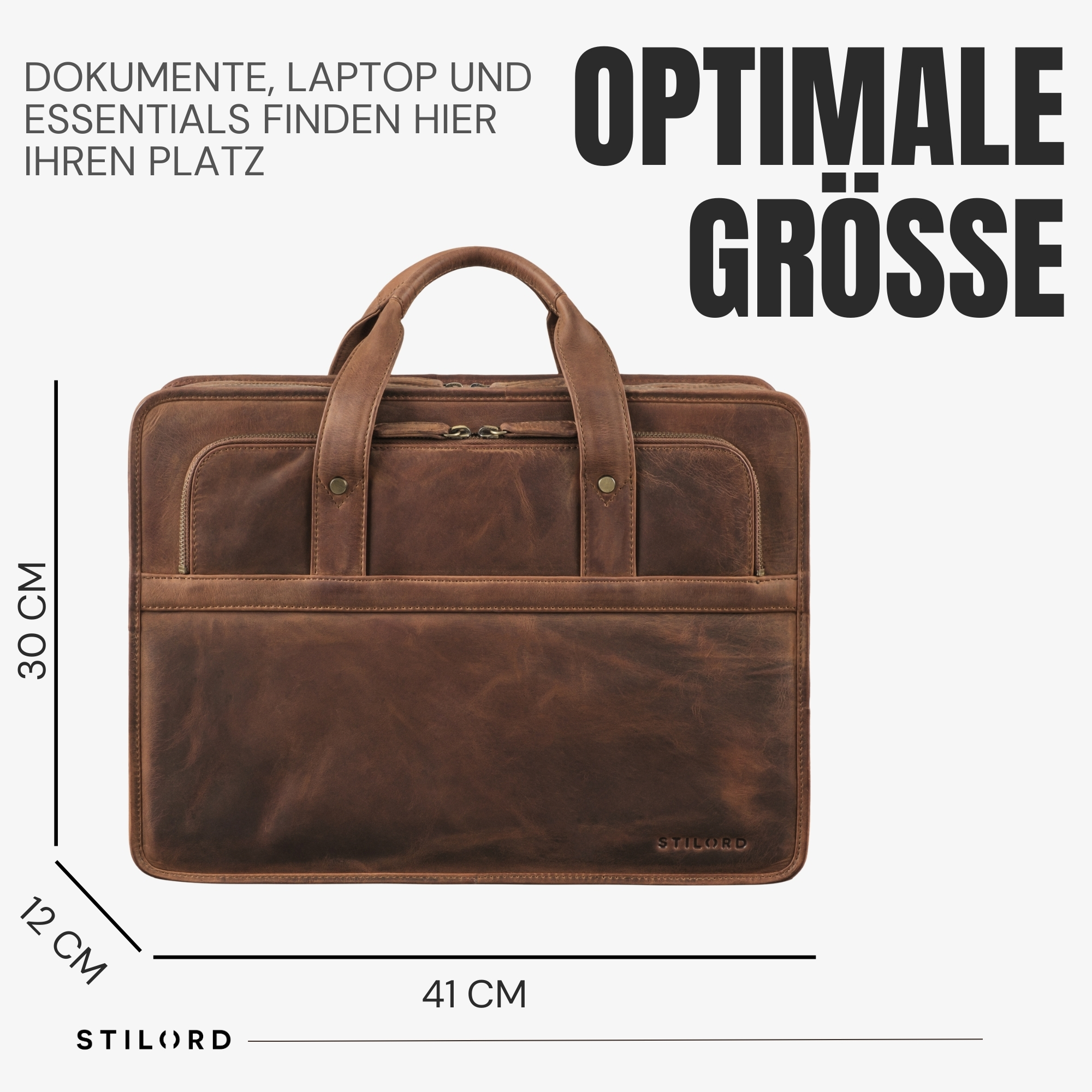 - Maße: 41 × 12 × 30 cm | Gewicht: 1820 g | Material: echtes Rindsleder | Modell: Paolo | Marke: STILORD