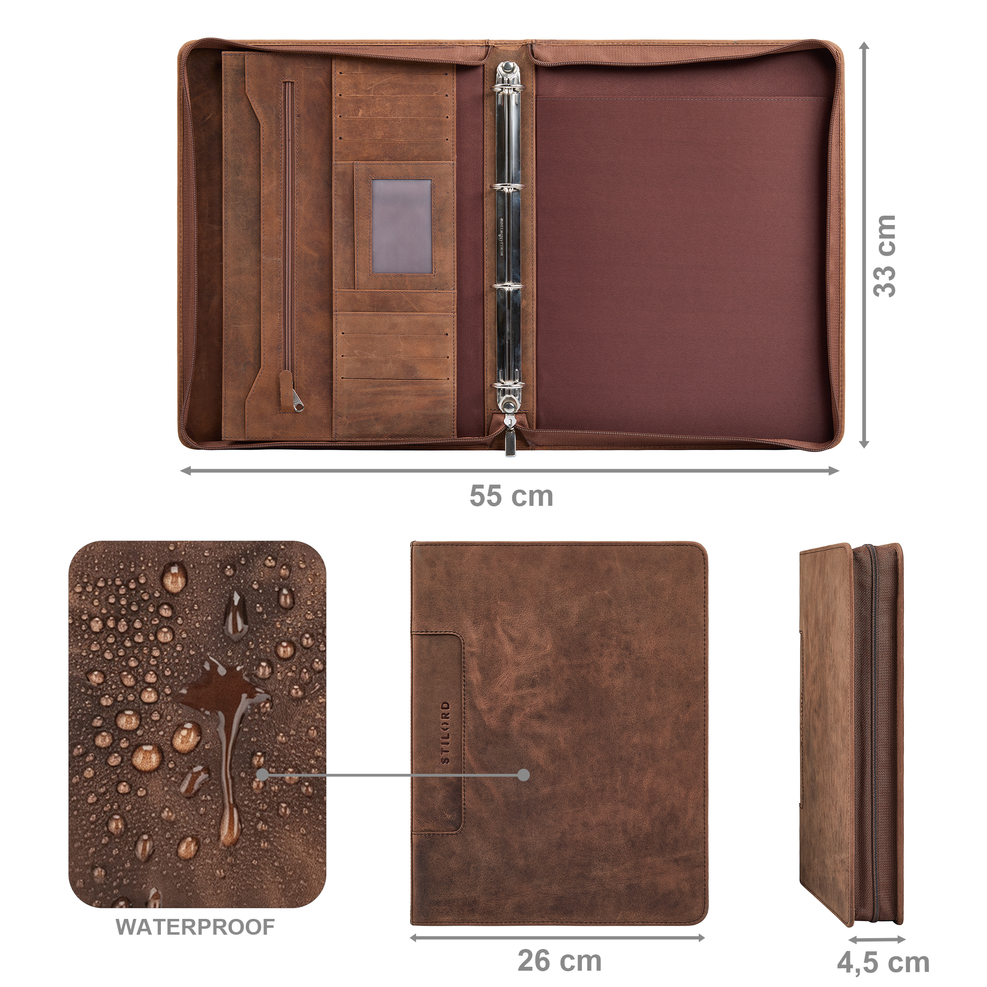 - Vintage Leder Dokumentenmappe A4 mit Ringbuch: Hochwertige Ledermappe mit Reißverschluss – ideal als Organizer Mappe, Schreibmappe A4, Tablettasche 11 Zoll, Business Mappe, Konferenzmappe aus echtem Leder für Büro & Arbeit