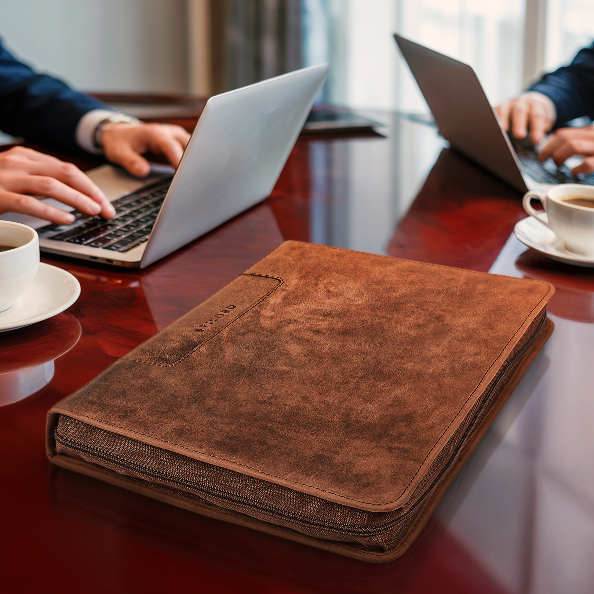- STILSICHER ZUM NÄCHSTEN BUSINESSMEETING: Die elegante Konferenzmappe aus echtem Leder überzeugt mit hochwertiger Verarbeitung und klassischem Vintage Design – ideal für den professionellen Auftritt im Büro, bei Kundenterminen oder auf Konferenzen.