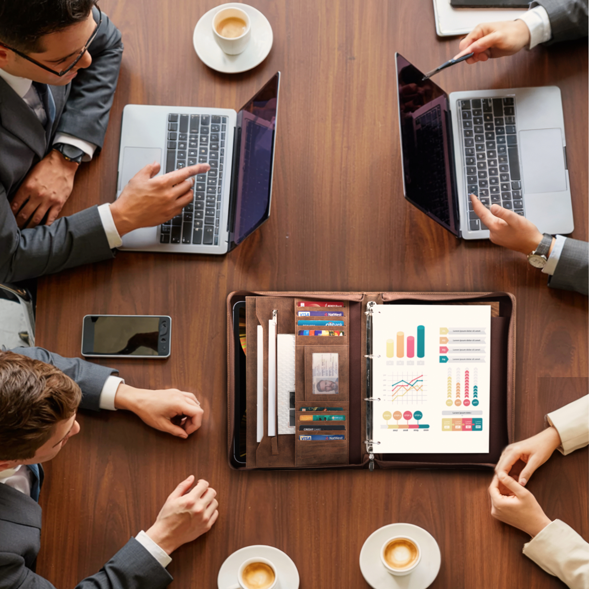 - ORGANISIERT UND EINSATZBEREIT: Mit Ringbuch, DIN A4 Einsteckfach, Tabletfach (11 Zoll), Reißverschlussfach, 2 Einsteckfächern und 9 Kartenfächern bietet die Leder Dokumentenmappe eine durchdachte Aufteilung für Ihre Unterlagen, Notizen und Business Essentials.