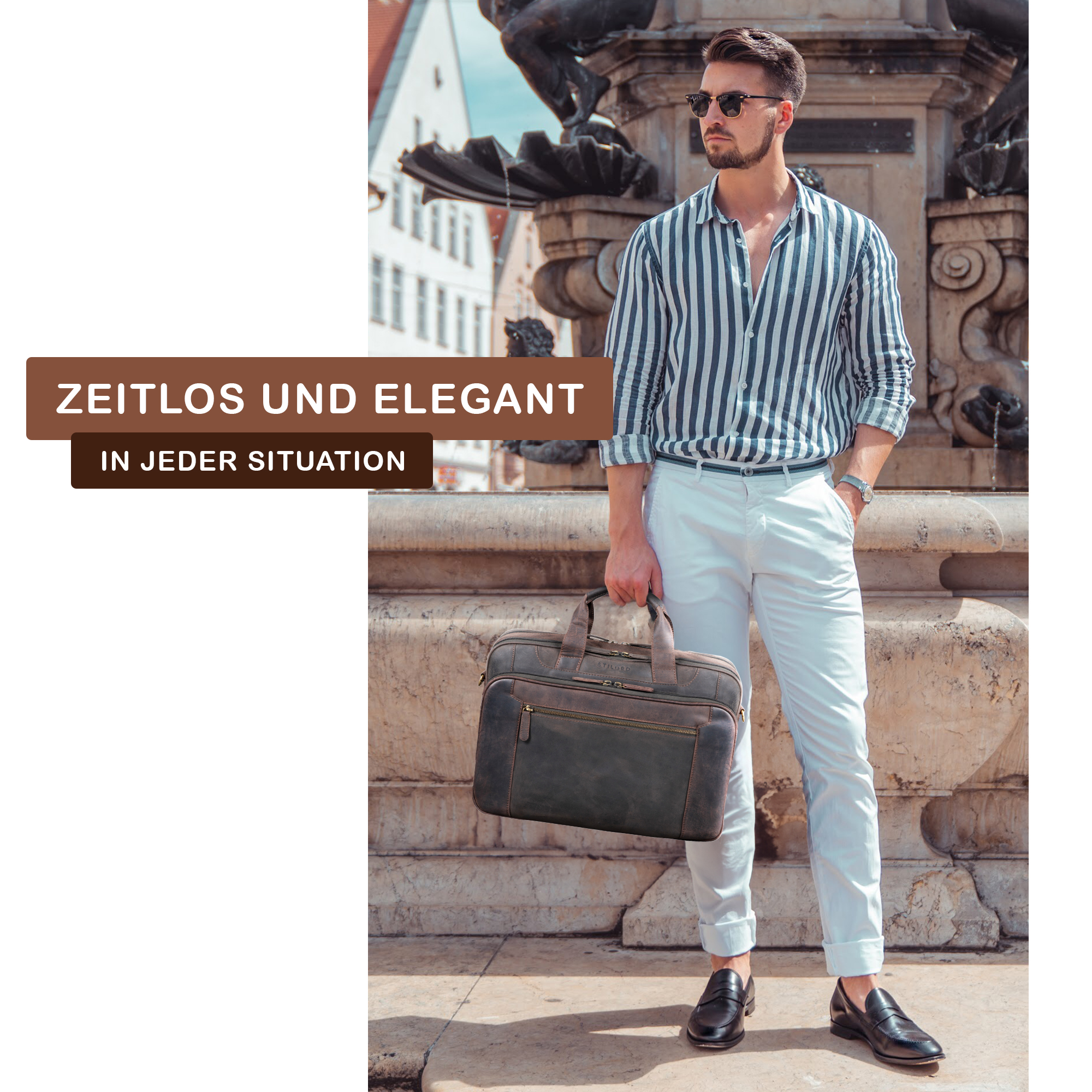 Stilvolle Eleganz im Businessleben - dazu hochwertiges Leder, viel Platz und STILORD Qualität. Nelson vom jungen Markenhersteller STILORD ist Ihr einzigartiger Begleiter und überzeugt analog oder digital - dank "Nelson" sind Sie bestens aufgestellt und organisiert: Im 15,6 Zoll Notebookfach bringen Sie Ihren Laptop unter, während große Aktenordner daneben Platz finden. Ihr wertvoller Inhalt wird durch einen Reißverschluss perfekt geschützt. Dazu tragen Sie die Vintage Ledertasche besonders bequem: Der Schulterriemen ist gepolstert, abnehmbar und frei verstellbar in der Länge. Hinzu kommen hochwertige Griffe aus Leder.