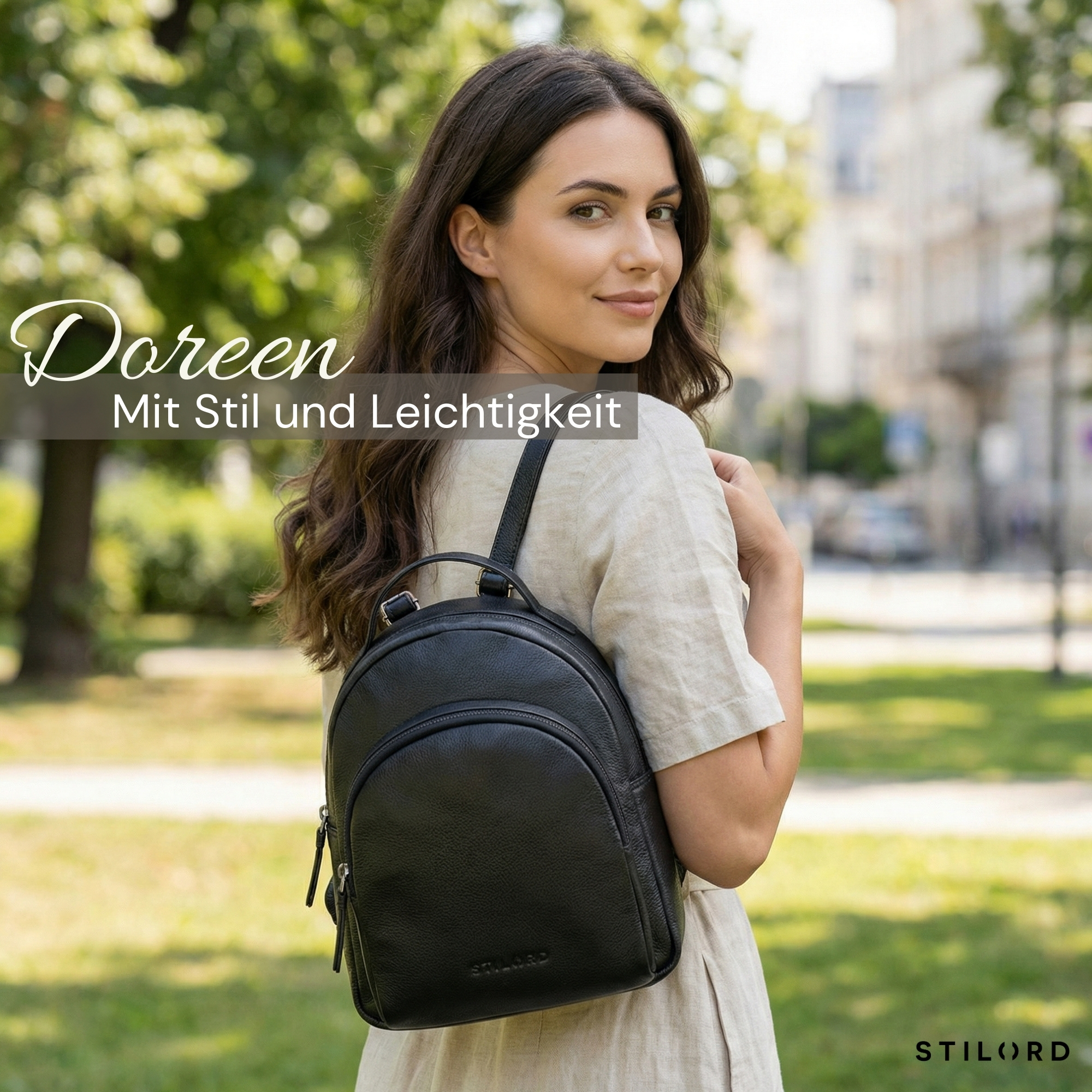 - ELEGANZ, DIE BEGEISTERT: "Doreen" ist Ihr kleiner Rucksack Damen Leder mit modernem, stilvollem Charakter. Als Cityrucksack Damen aus Echtleder verleiht er jedem Outfit eine raffinierte Note – für Momente, die Eindruck hinterlassen.