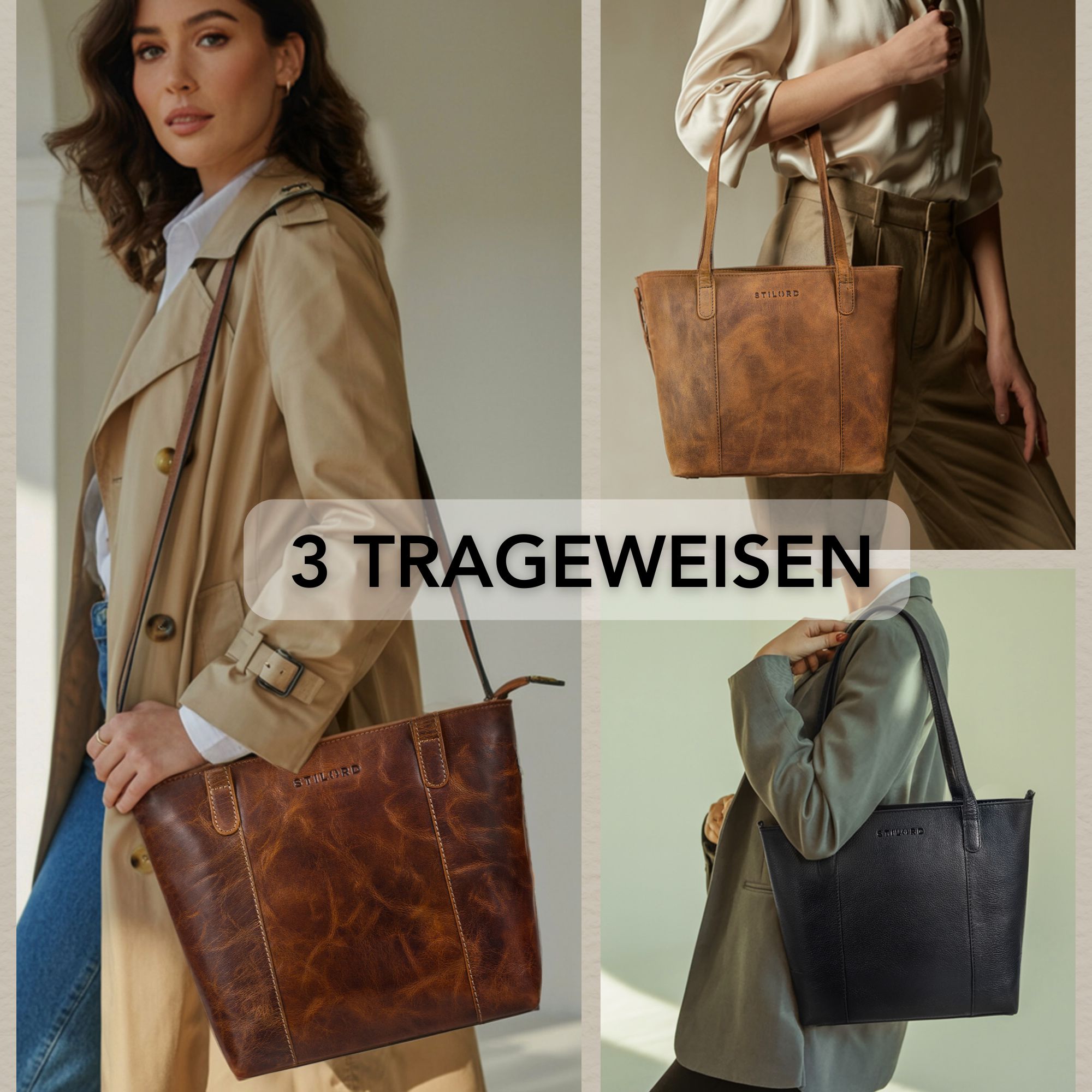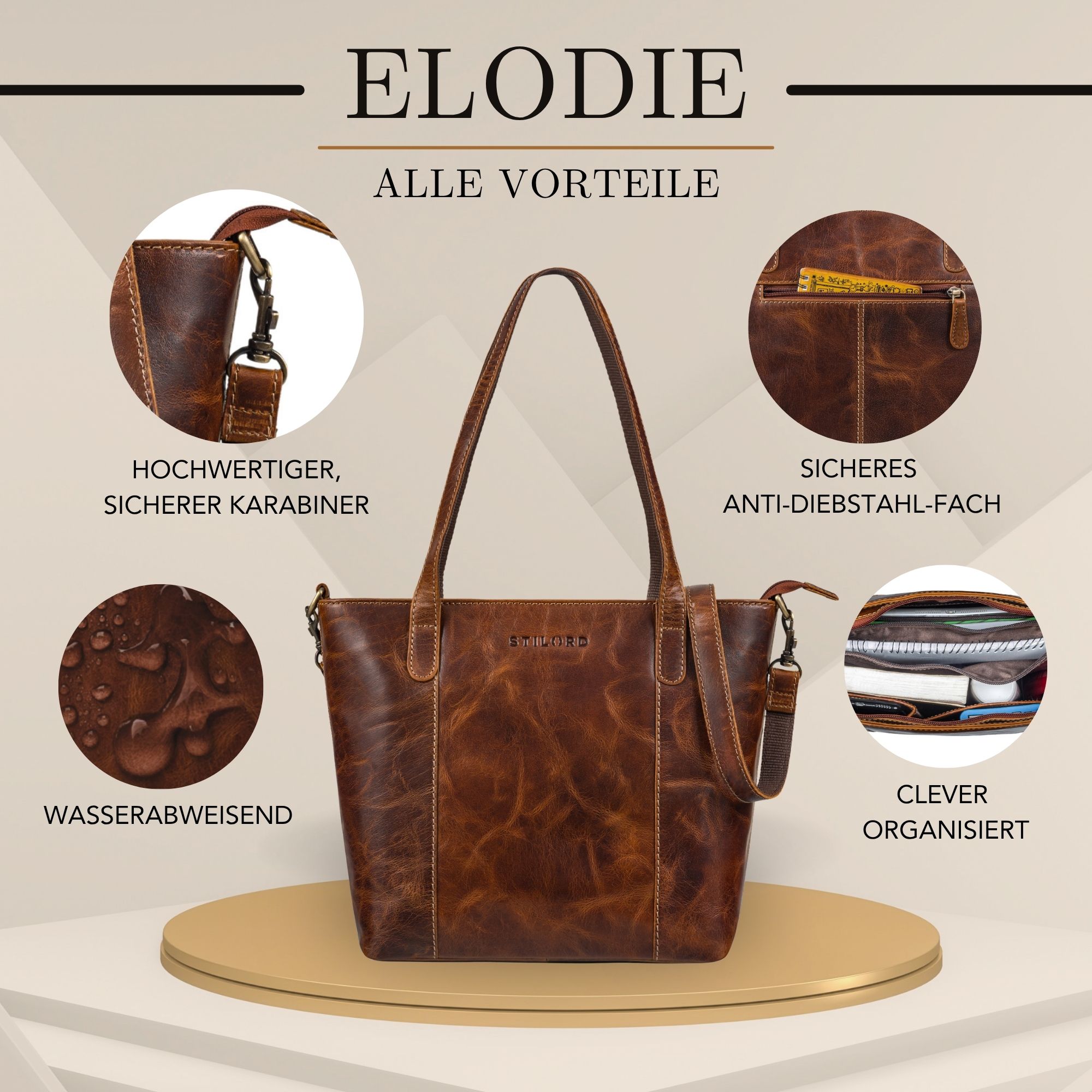 STILORD "Elodie" Echtleder Damen Handtasche Mittelgroß – Alles auf einen Blick