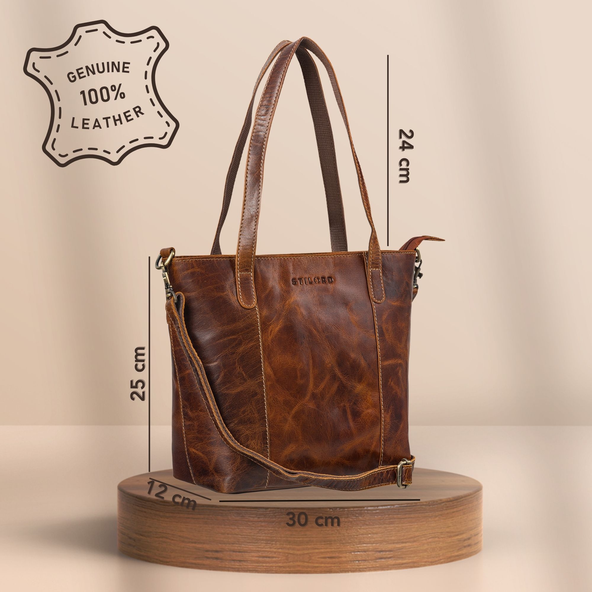 - ELEGANTE DAMENHANDTASCHE: Die Damen Ledertasche aus Vintage-Echtleder (30 x 12 x 25 cm, 640 g) bietet clevere Fächer und einen abnehmbaren Schultergurt. Als eleganter Ledershopper ist sie die ideale Tasche mit Reißverschluss – stilvoll und organisiert im Alltag.