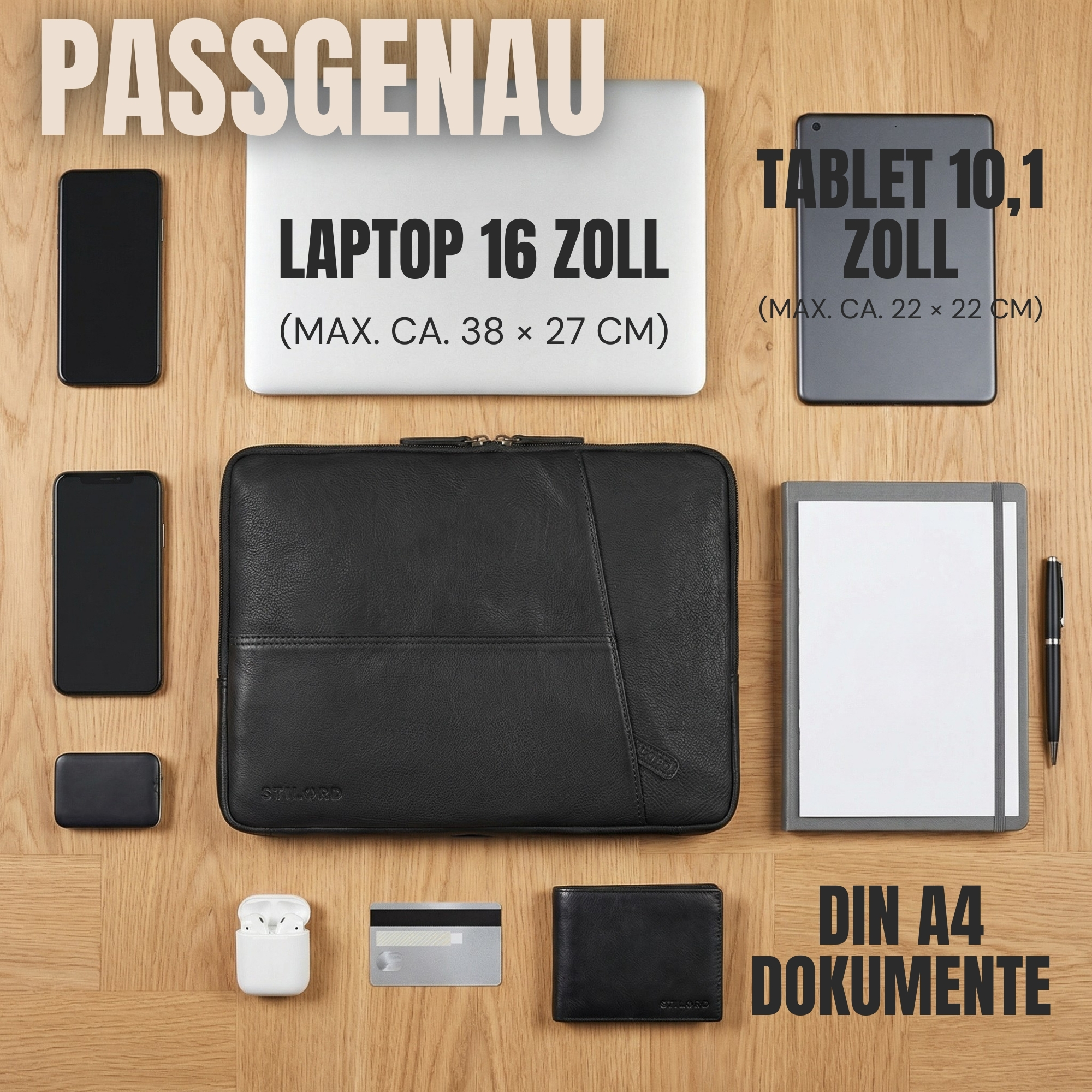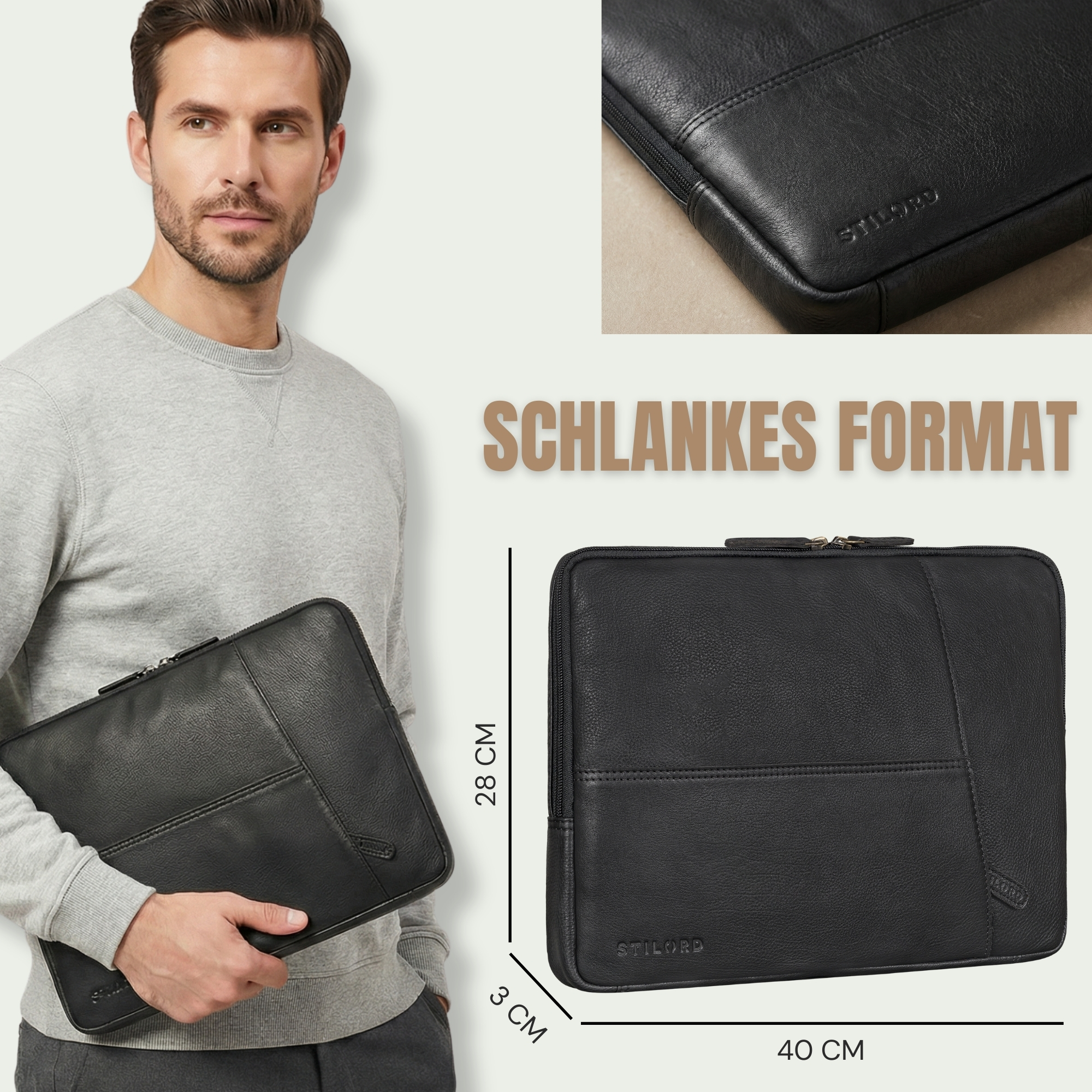 • SCHLANKE LAPTOPHÜLLE 15-16 ZOLL LEDER: Eine Laptophülle 16 Zoll Leder, die minimalistisches Design, echtes Rindsleder und einen professionellen Auftritt vereint – ideal für Business-Männer und Studierende mit Stil.