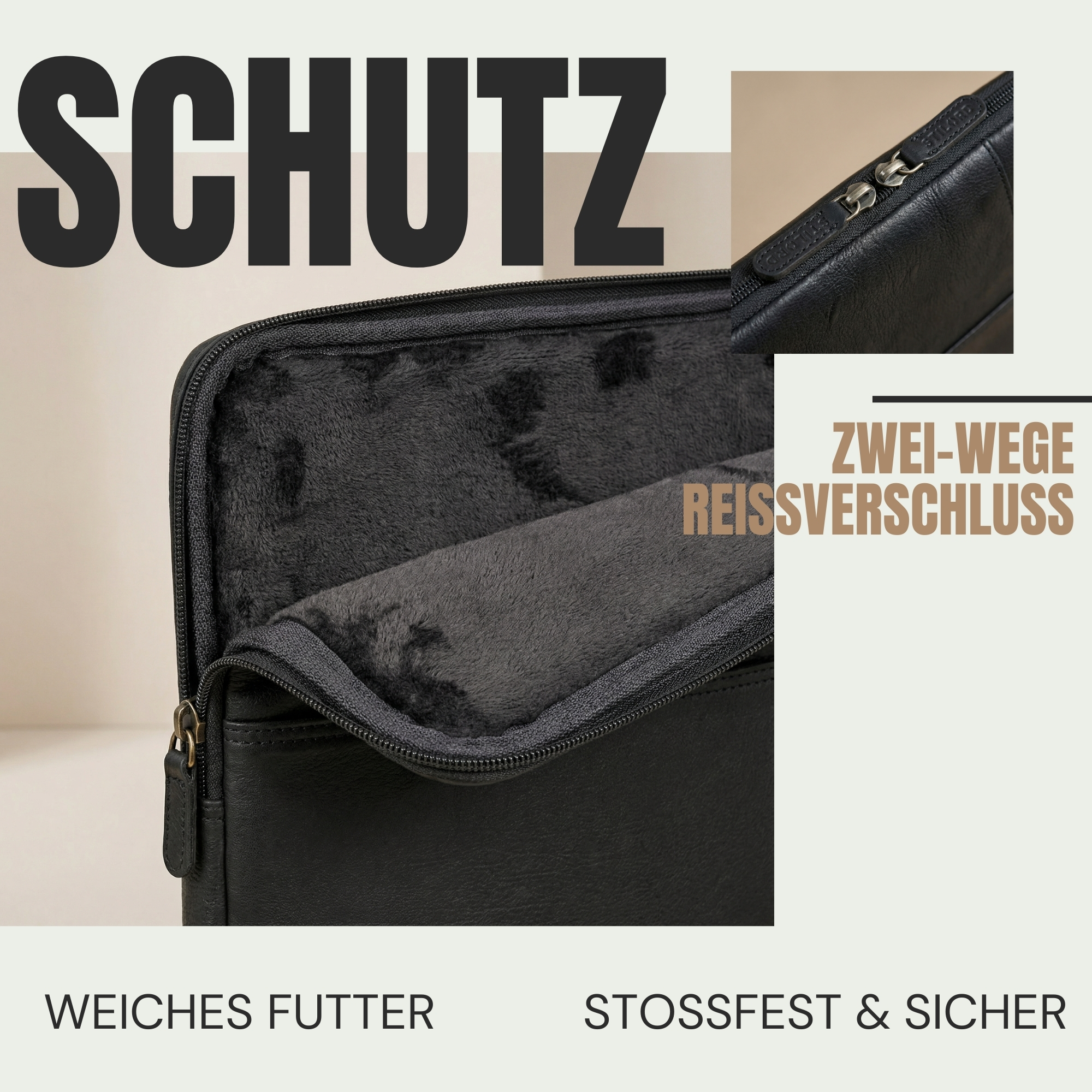 • Gepolsterter Rundumschutz: Weiches Innenfutter mit verstärktem Kantenschutz – zuverlässige Laptop Hülle Leder für sicheren Transport im Arbeitsalltag, in der Uni oder auf Reisen