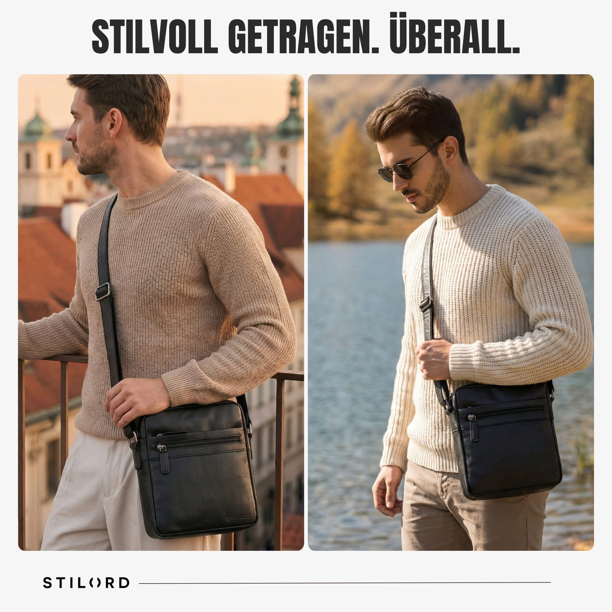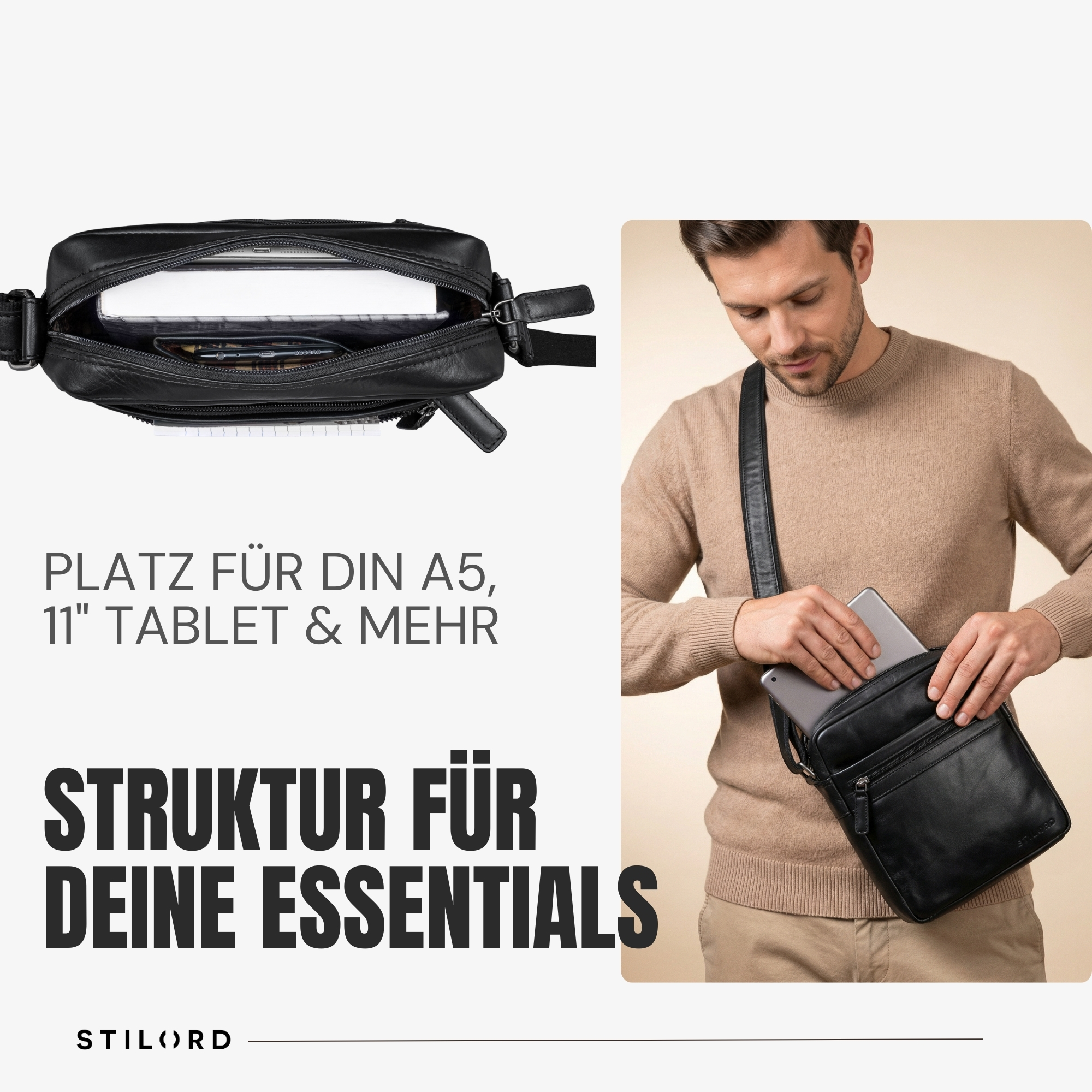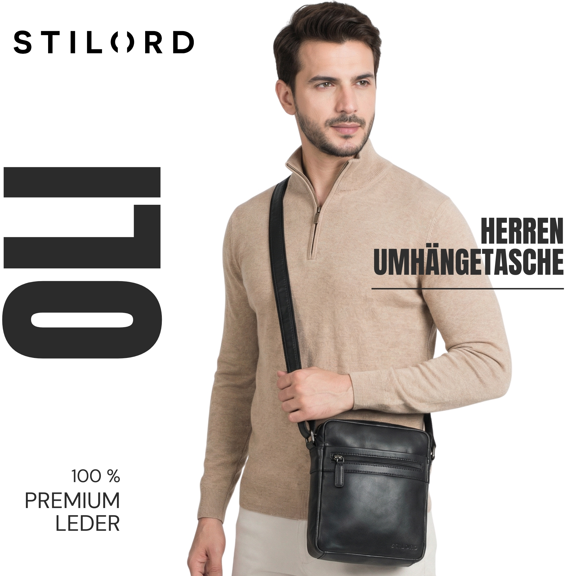 STILORD “Oli” Stylishe Umhängetasche Männer Echtleder - Alles auf einen Blick: