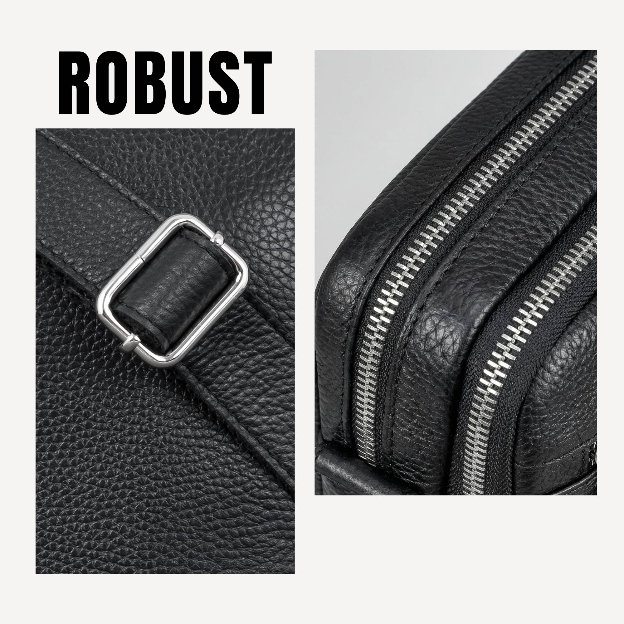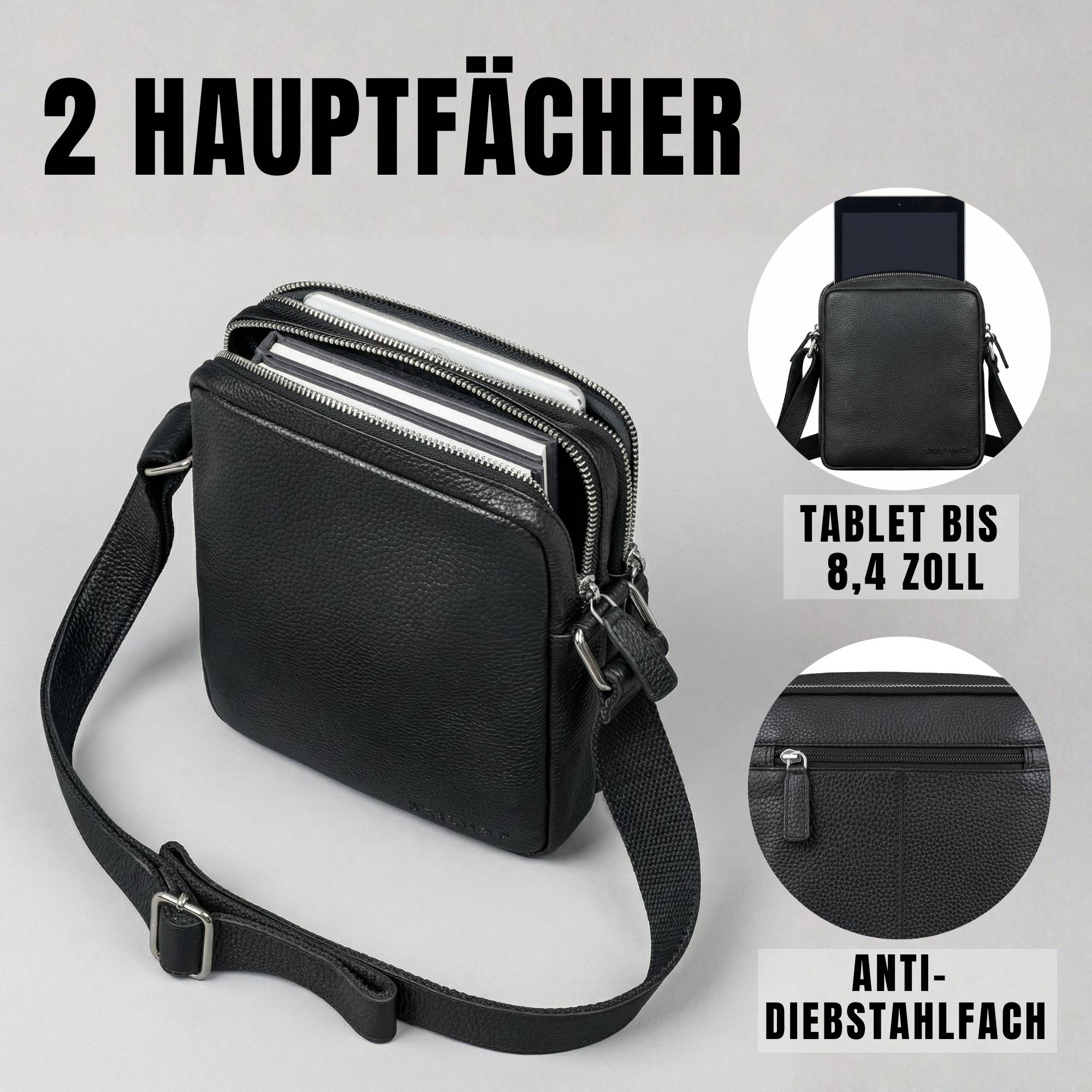 - KLEIN & GERÄUMIG: Ideal für Unterwegs mit 2 Hauptfächern, leichtgängigen Reißverschluss & Diebstahlsicheren Fach | Die Herren Ledertasche klein bietet eine einfache Aufteilung - Hier ist Platz für Geldbörse, Schlüssel, Smartphone & Tablet.