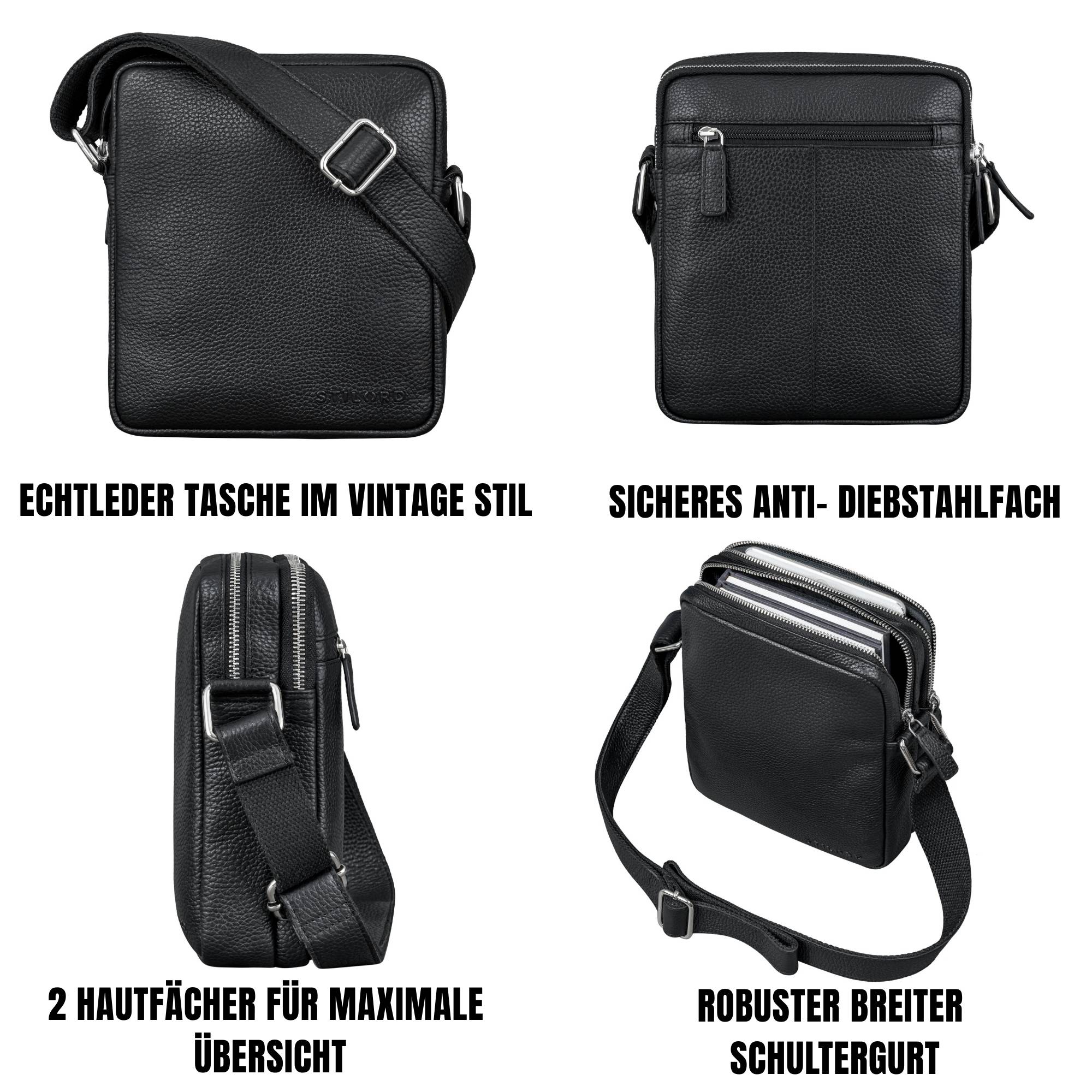 - VERSCHIEDENE TRAGEMÖGLICHKEITEN: Dank des verstellbaren, breiten Trägers (73 - 137 cm | 3 cm) bietet die Männerhandtasche Leder flexible Tragemöglichkeiten, als kleine Schultertasche Herren oder Crossbody Umhängetasche für maximalen Komfort