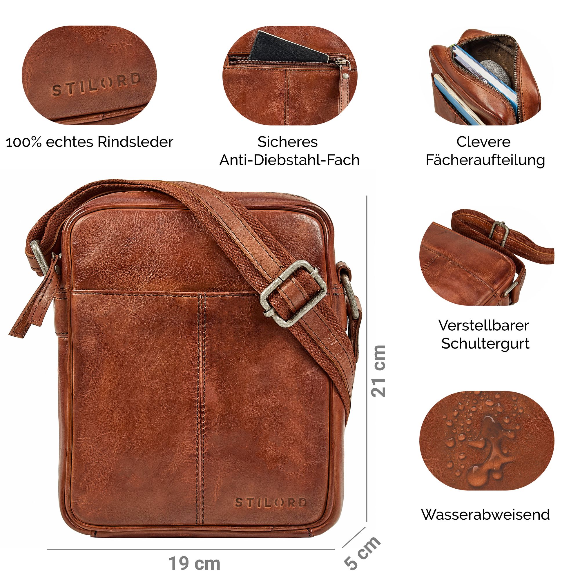 STILORD "Nilo" Kleine Leder Umhängetasche Herren – Alles auf einen Blick
