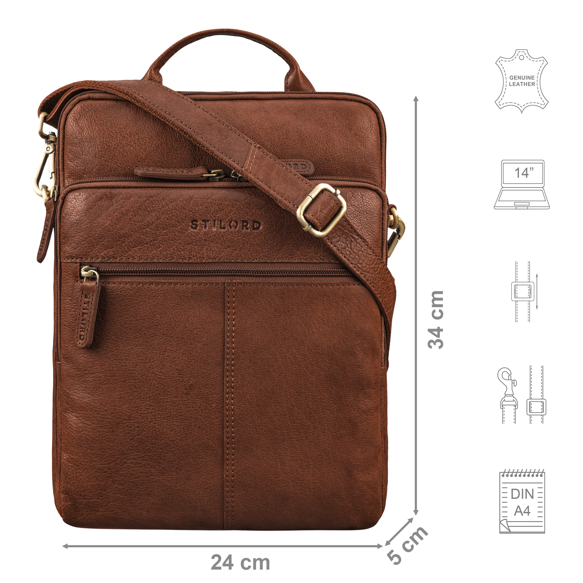- DETAILS: Maße (LxBxH): ca. 24 x 5 x 34 cm | Gewicht: 670 g | Modell: "Stellan" | Material: Naturbelassenes Echtleder | Hersteller: STILORD | Kompatibilität: 14 Zoll Laptop, DIN A4 Dokumente | Besondere Merkmale: Verstellbarer Schultergurt, zusätzlicher Henkel, weiches Innenfutter.