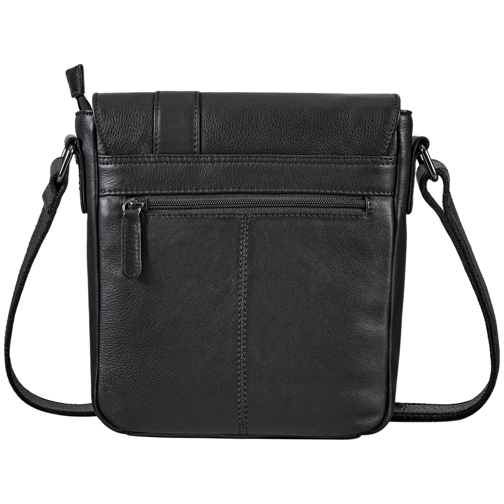 - STILSICHERHEIT MIT DEM GEWISSEN EXTRA: kleine Leder Umhängetasche mit abgeschrägtem Überschlag mit Lederriemen und Nieten