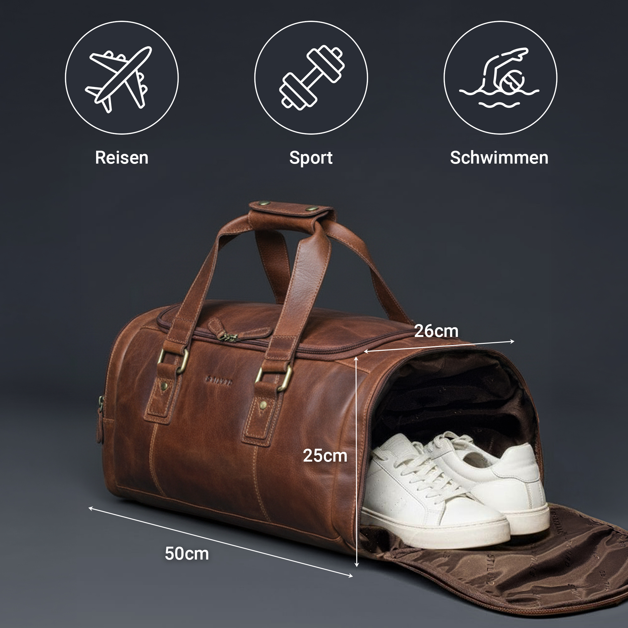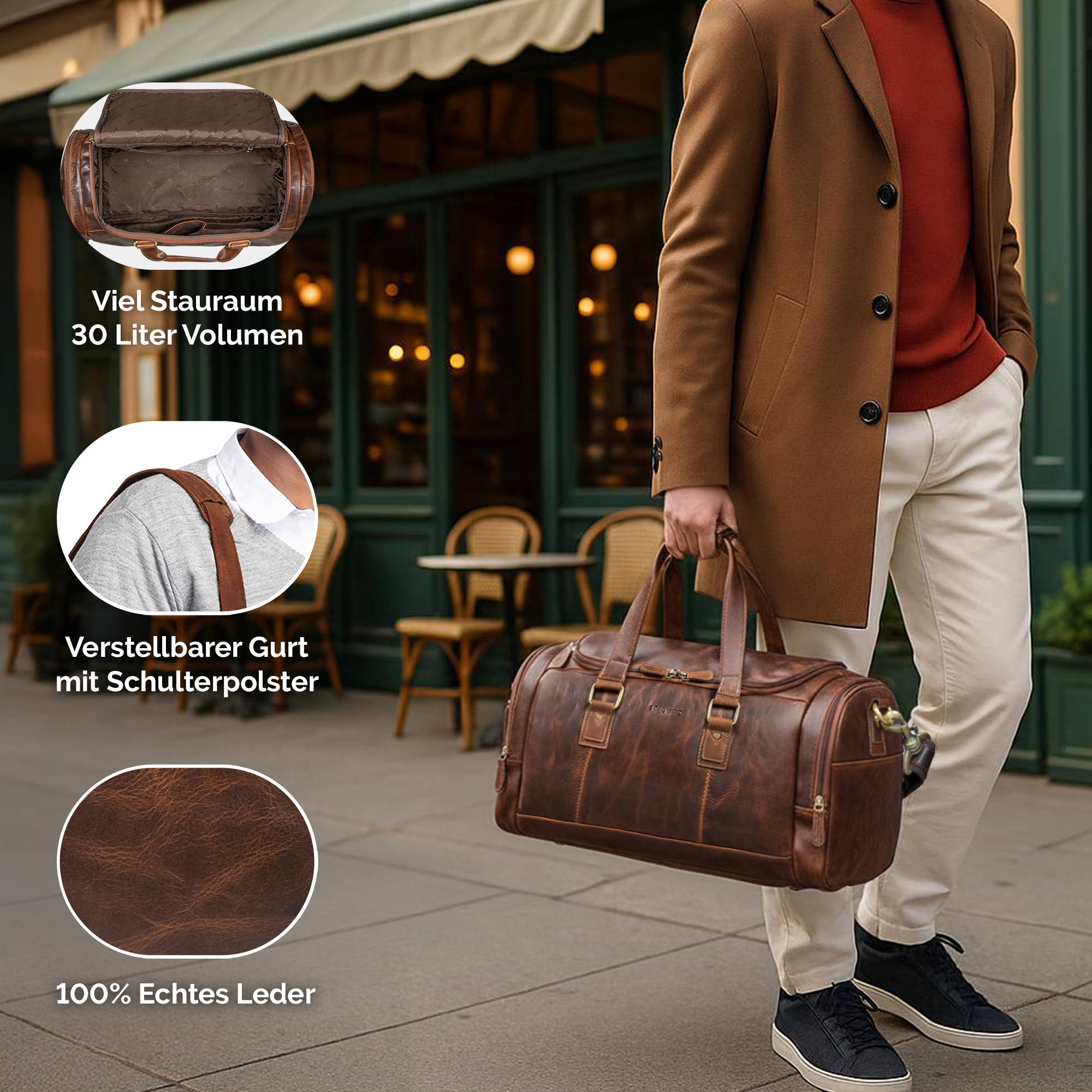- Kleiner Weekender Leder (50 x 24 x 25 cm) – ideal für Reisen & Sport