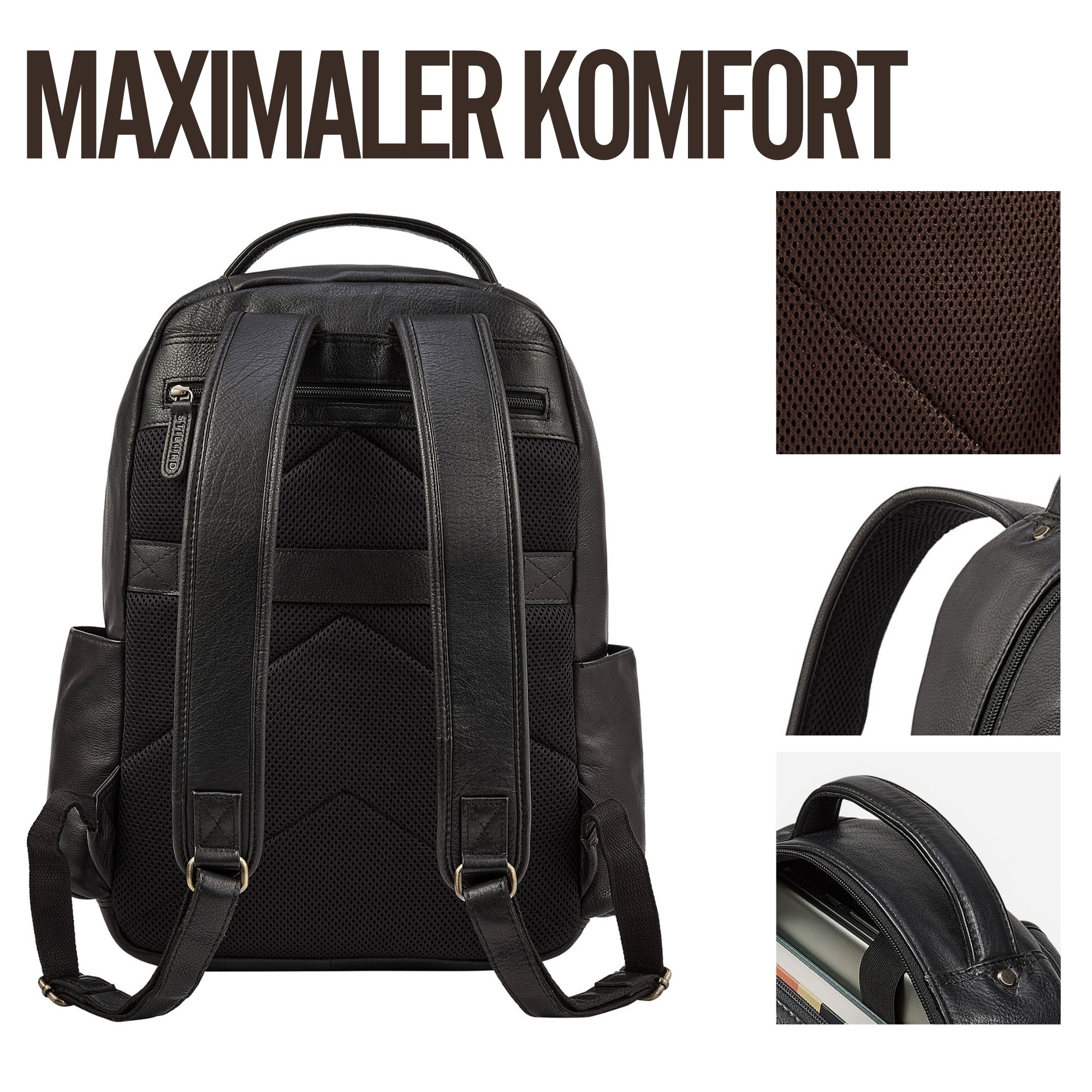 - DETAILS: Maße (LxBxH) ca. 38 x 12 x 42 cm | Gewicht: 1280 g | Modell: "Evan" | Material: Echtes Rindsleder | Marke: STILORD | Gepolsterte Gurte: 68 – 90 cm | Laptopfach: 32 x 40 cm für 16 Zoll