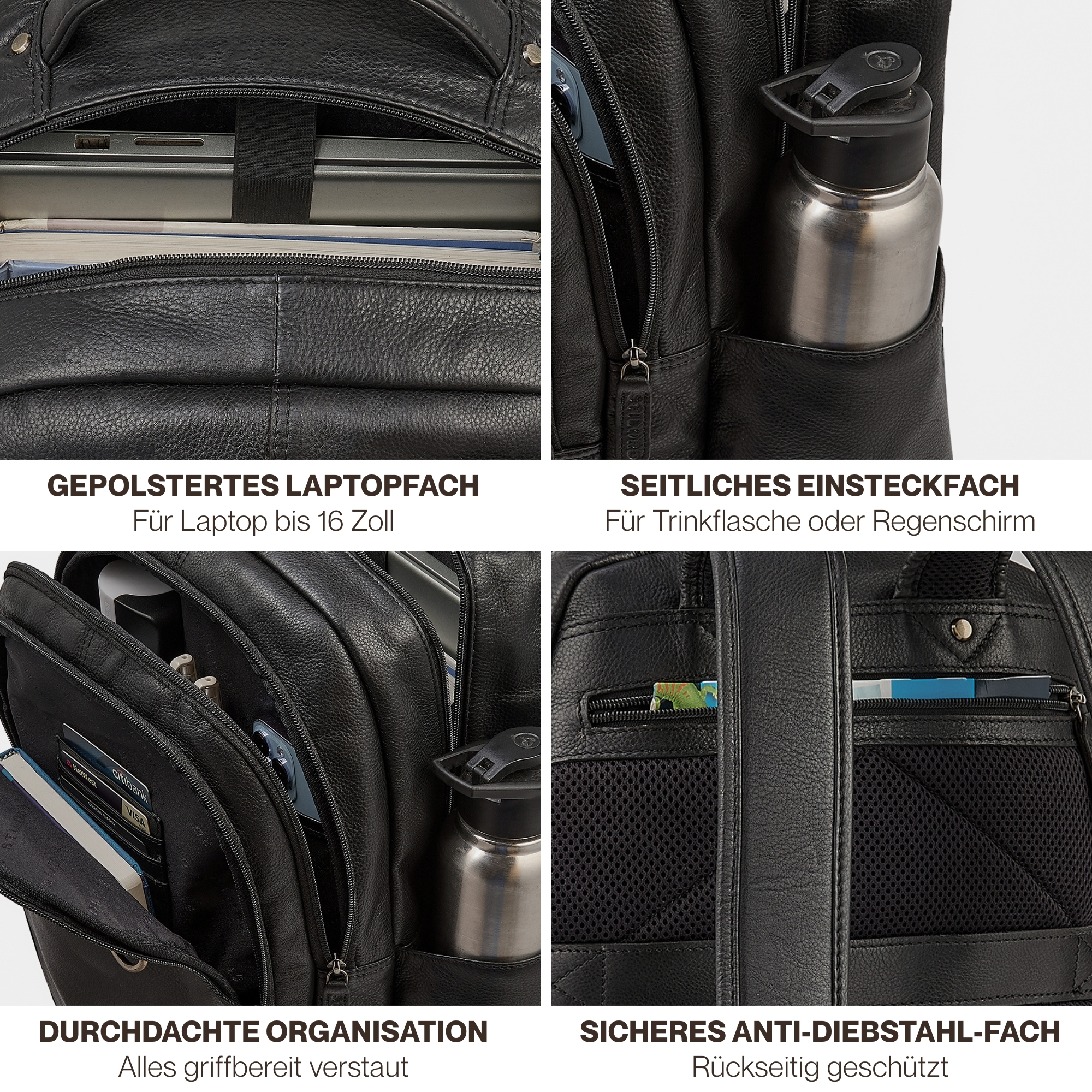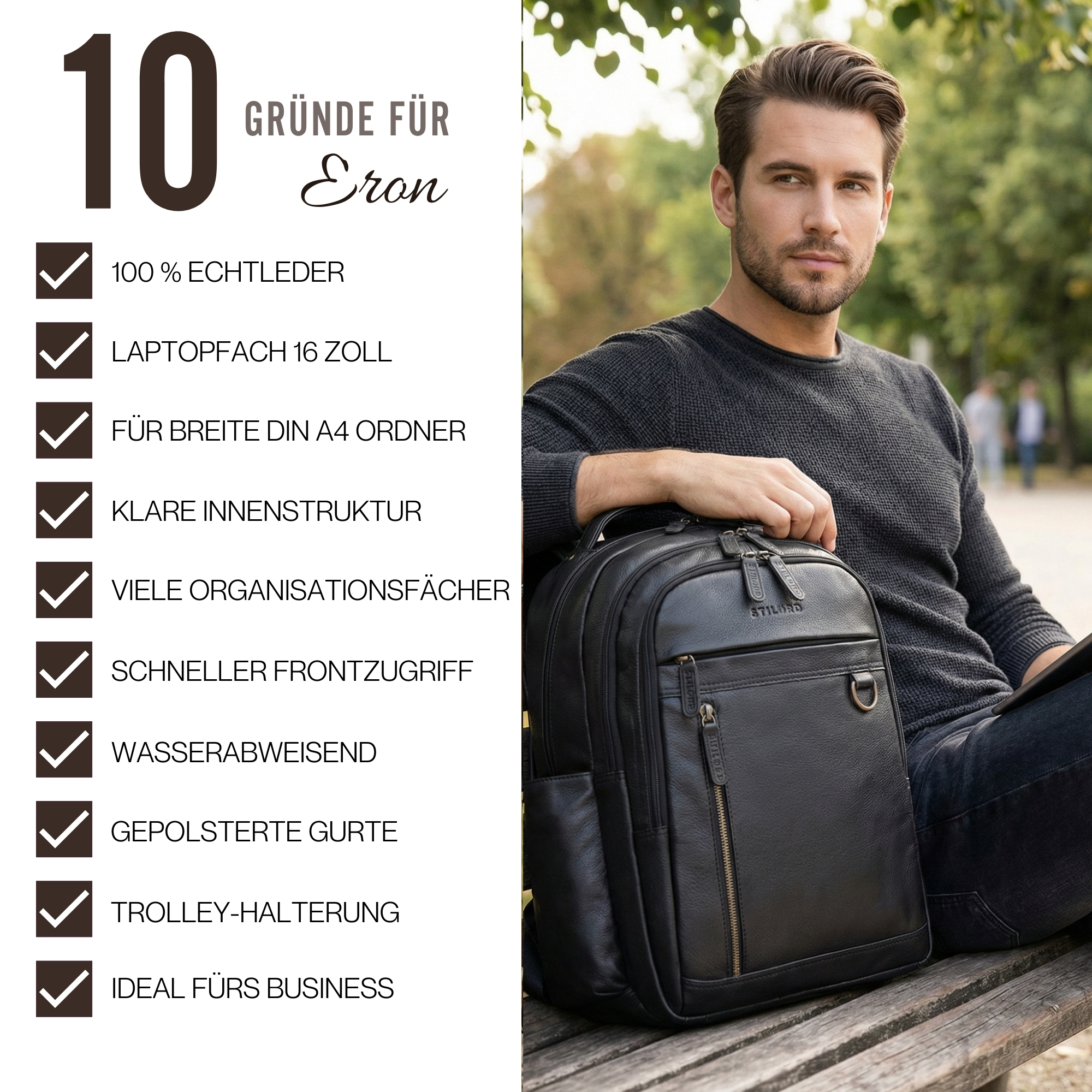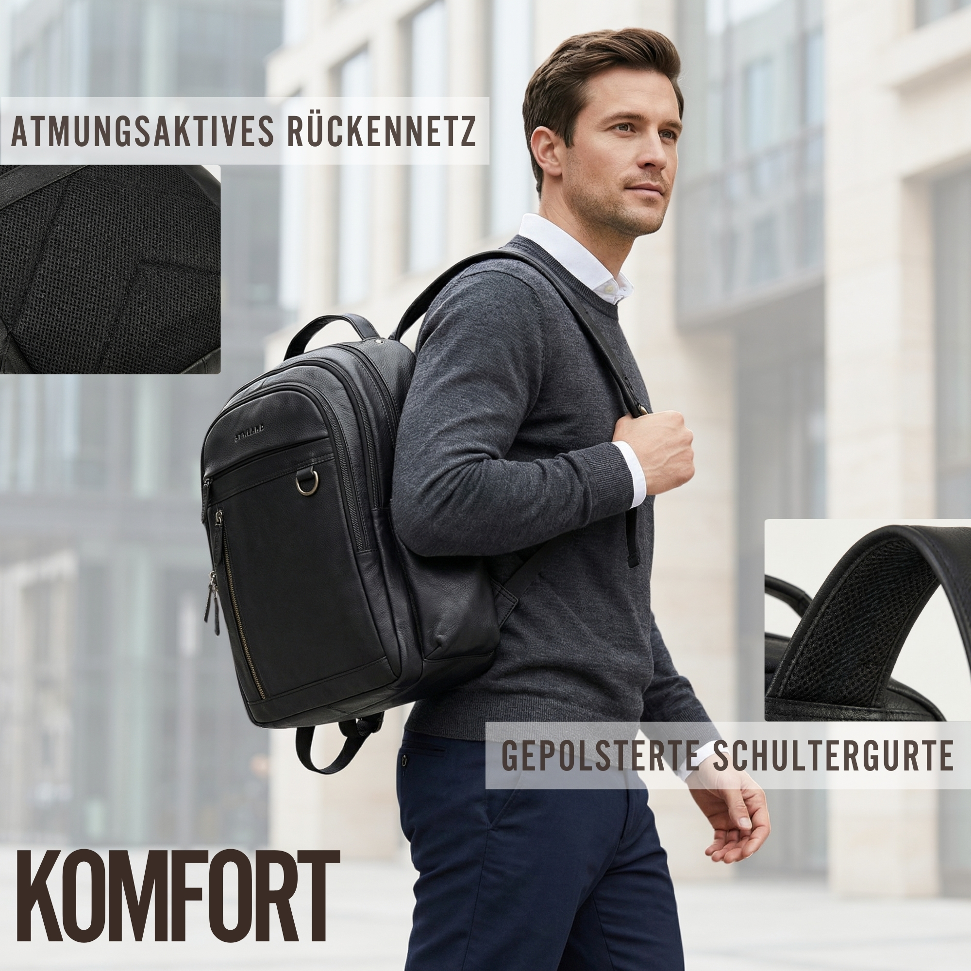 STILORD "Eron" Großer Herren Business Laptoprucksack Leder – Alles auf einen Blick