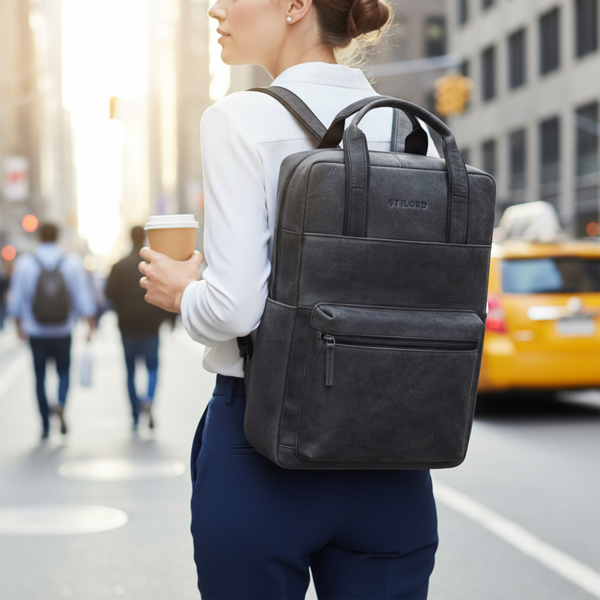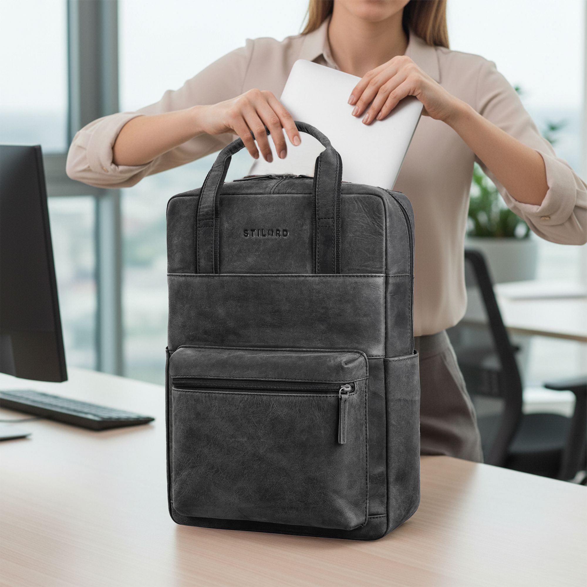 Alles auf einen Blick STILORD "Lilo" - Großer 15,6 Zoll Leder Rucksack für Damen