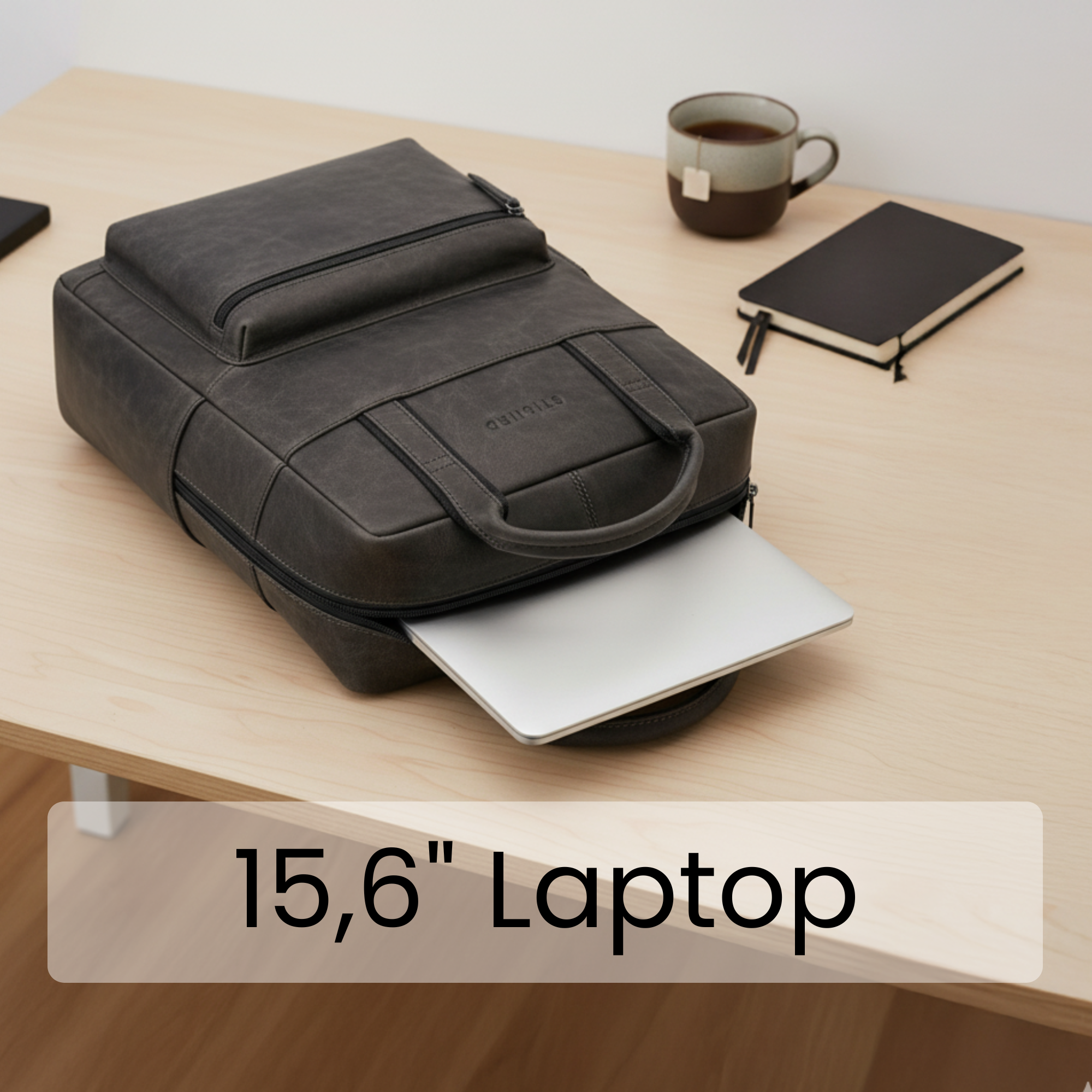 - 1 x großes Hauptfach passend für einen breiten A4 Ordner sowie ein sicher gepolstertes Laptopfach 15,6 Zoll (ca. 26 x 35 cm)