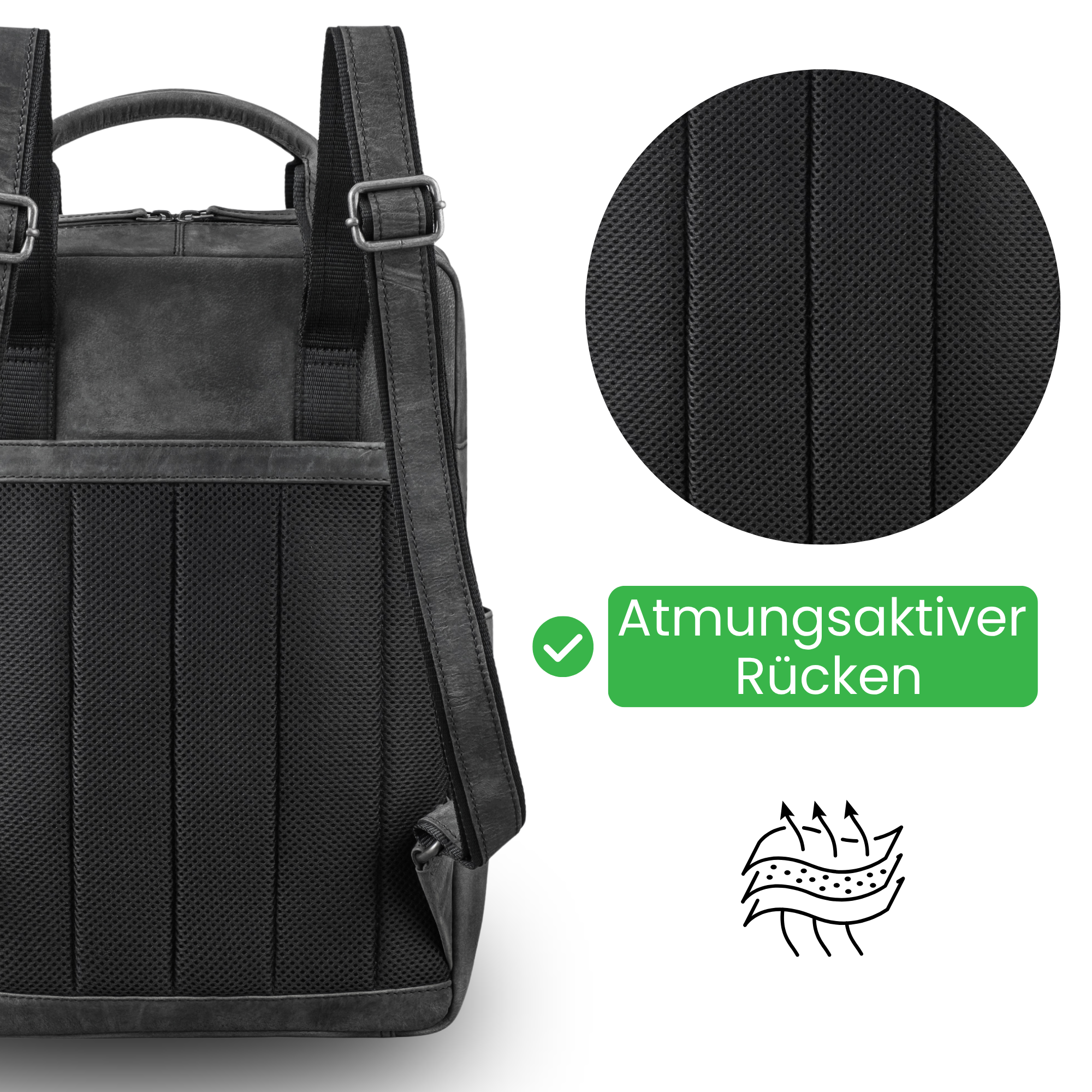 - Der gepolsterte Rücken mit stabiler Netz Beschichtung sorgt dafür dass Ihr Echtleder Rucksack Damen bequem auf Ihrem Rücken anliegt