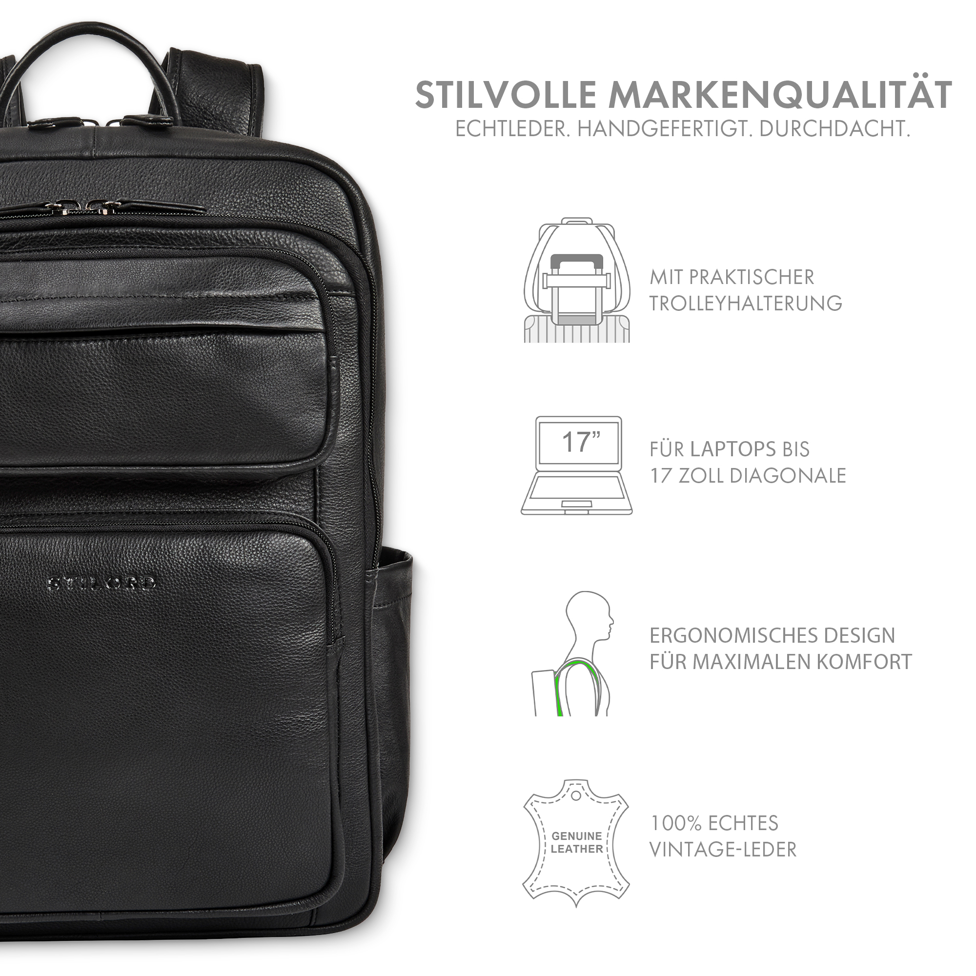 “Astoria” Stilvoller Business Lederrucksack Vintage mit 17 Zoll Laptop-Fach Uni Rucksack Reiserucksack Herren