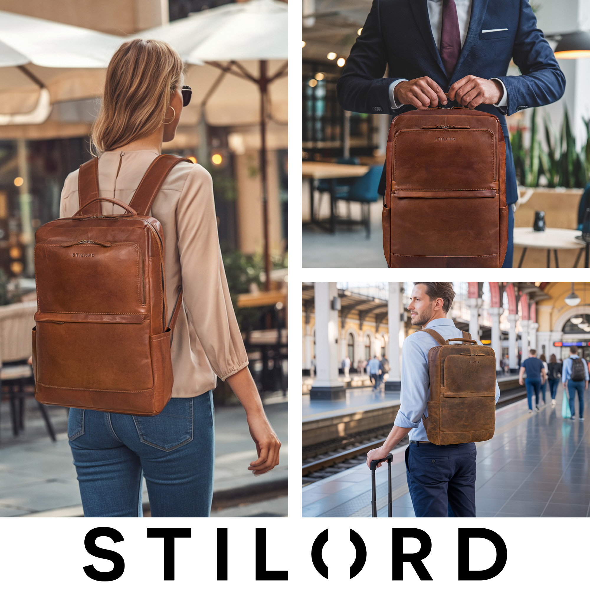 STILORD "Barney" Schmaler Laptop Rucksack 15,6 Zoll Leder