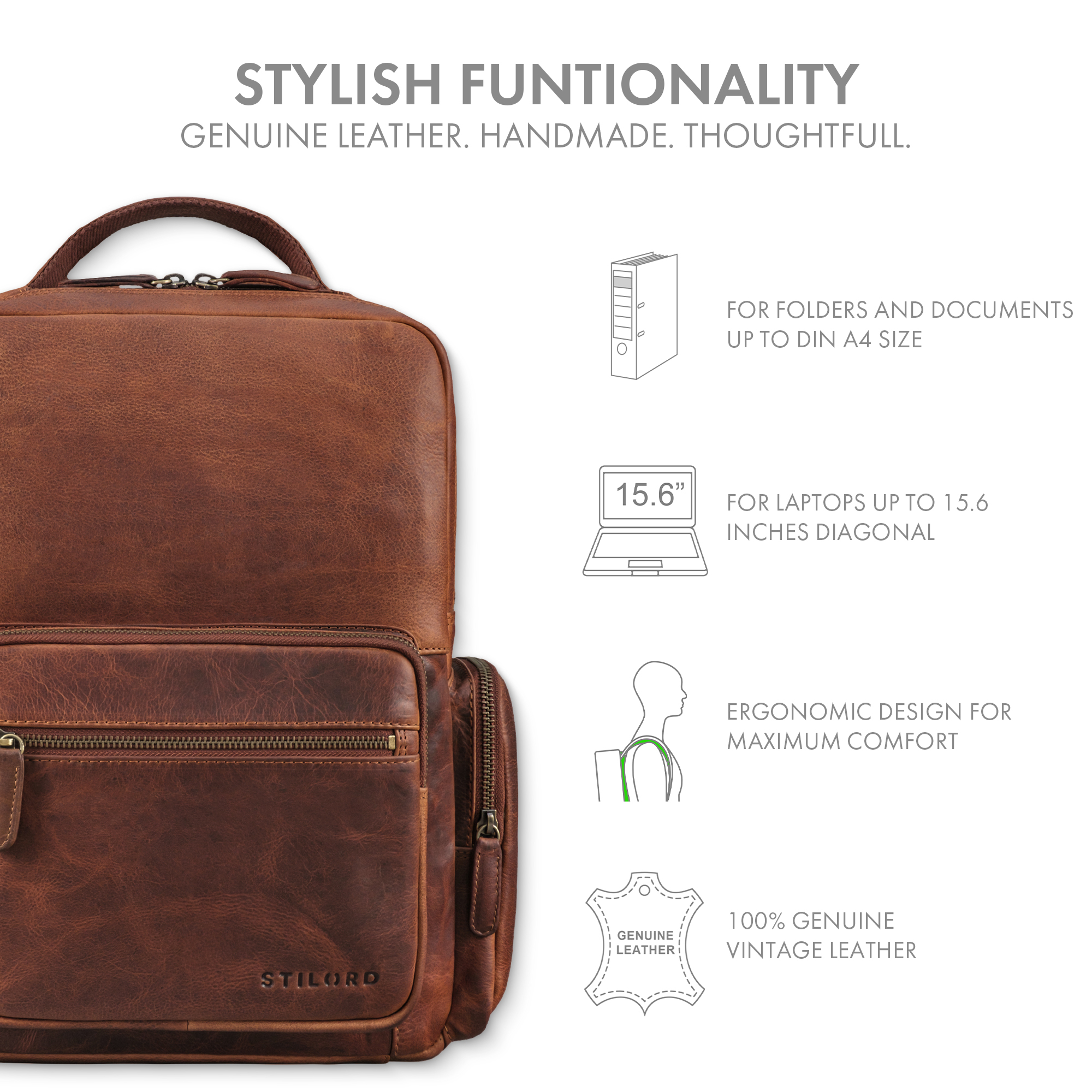 STILORD Laptoprucksack Leder - alle Highlights: