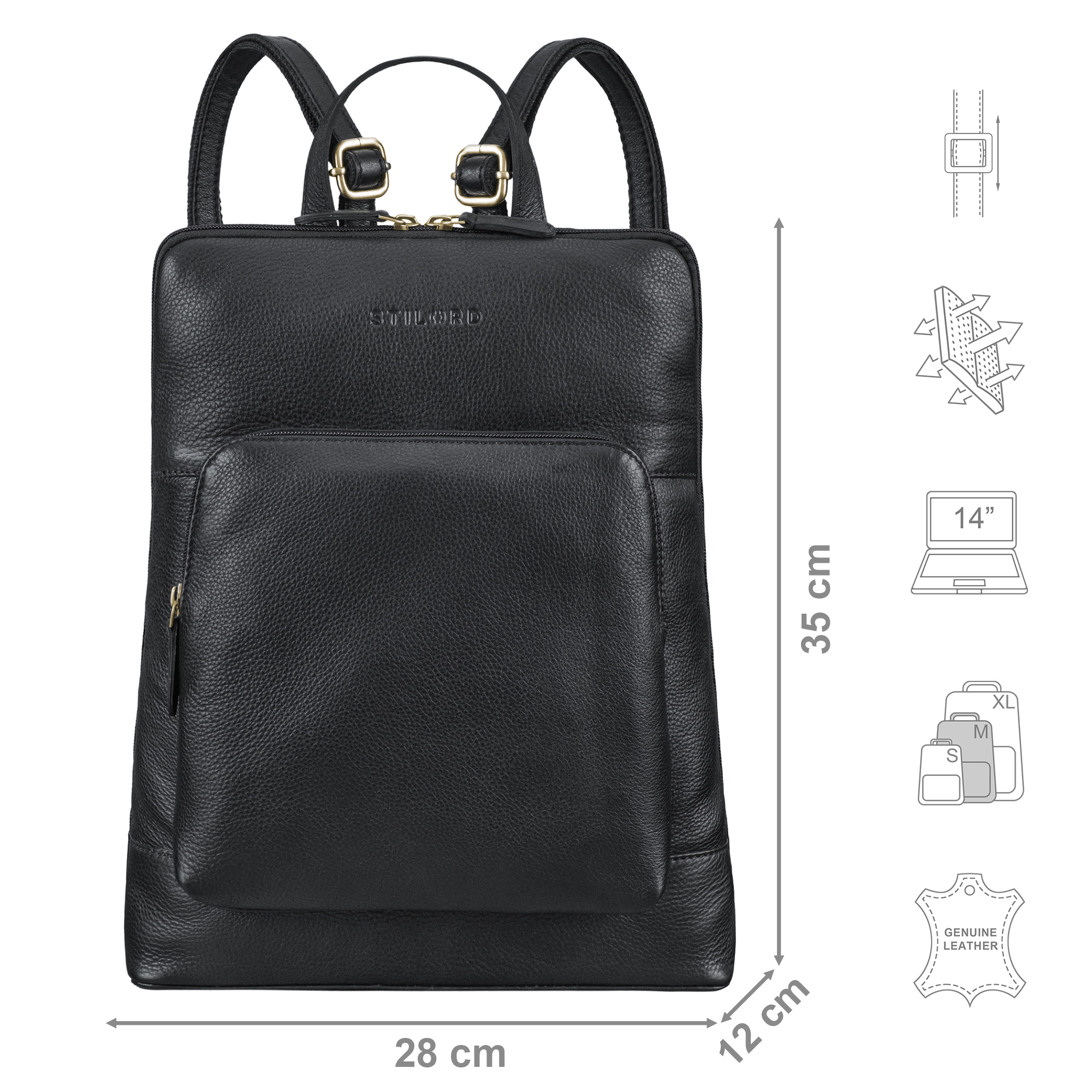- DETAILS: Maße: 28 cm x 12 cm x 35 cm | Gewicht: 750 Gramm | Modell: "Celia" | Material: Echtes Rindsleder | Marke: STILORD | Kompatibilität: Laptop rucksack 13 Zoll | 13,3 | 14 | 14,2