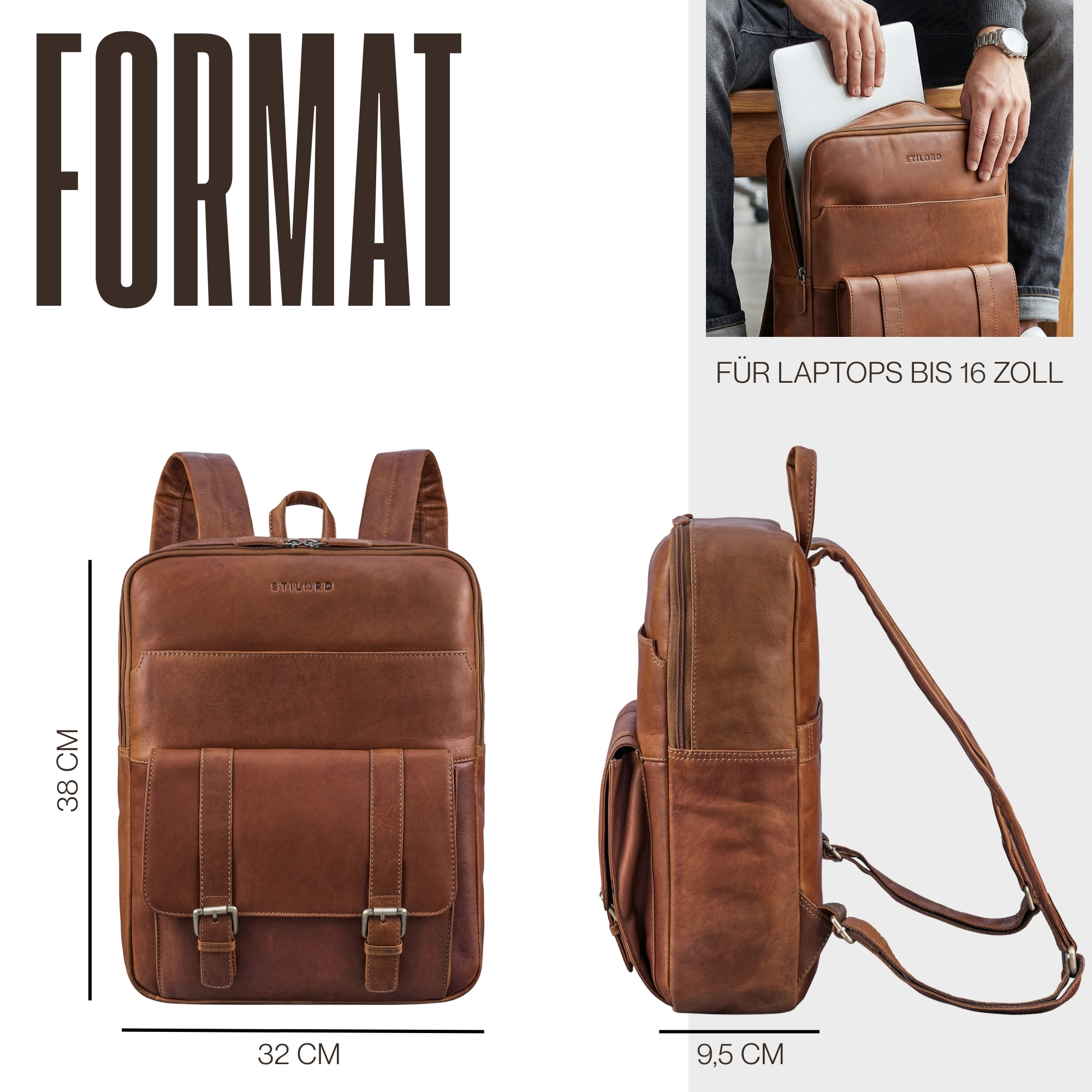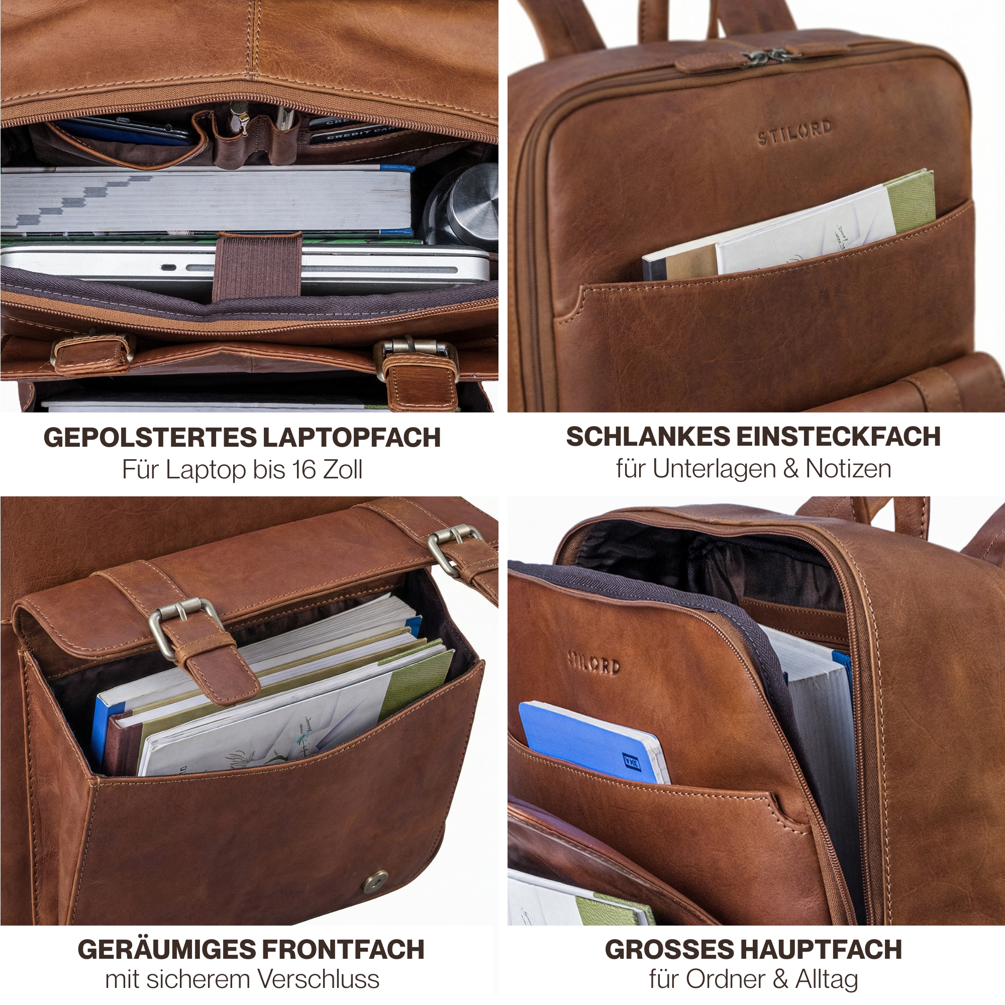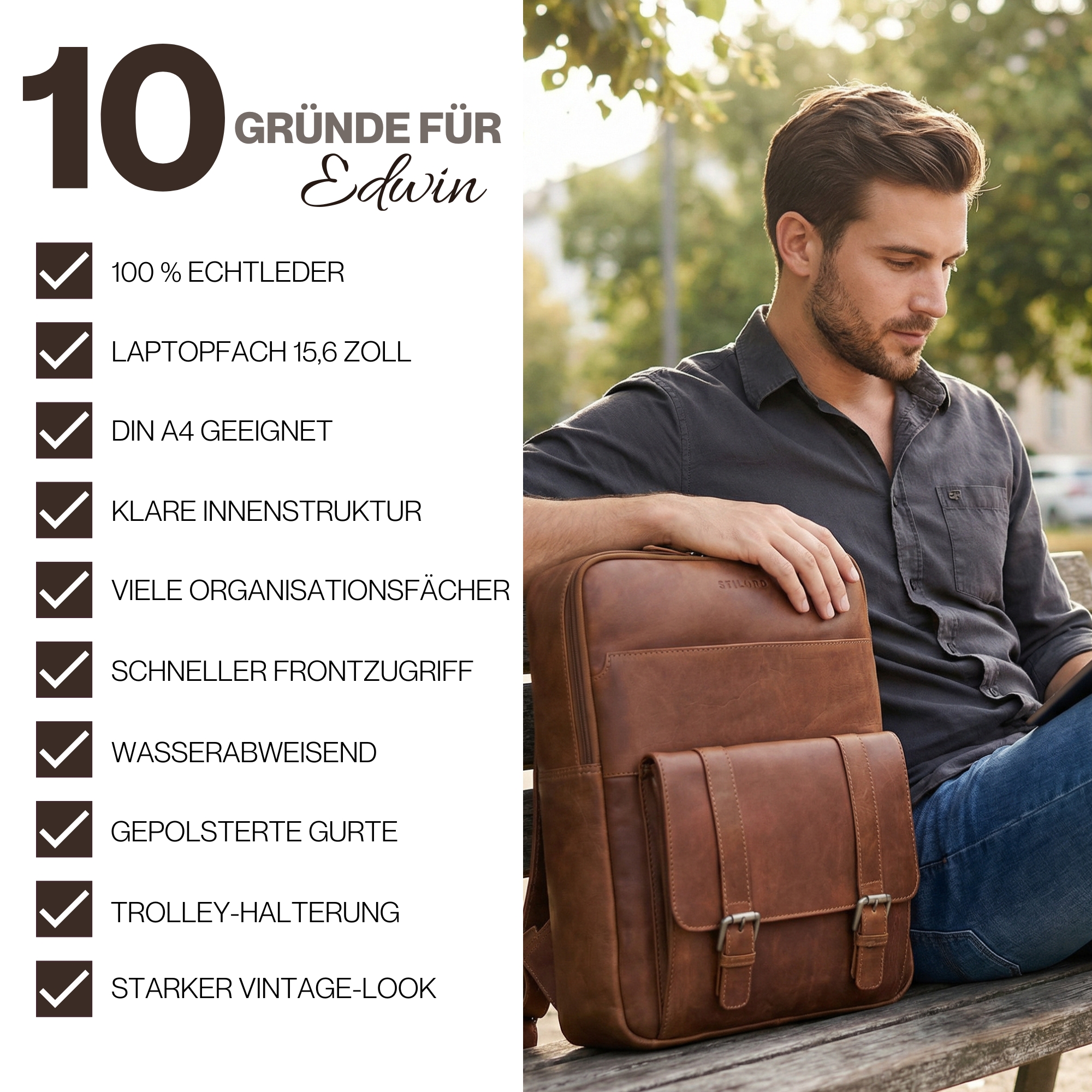 STILORD "Edwin" Laptop Rucksack Herren Leder – Alles auf einen Blick
