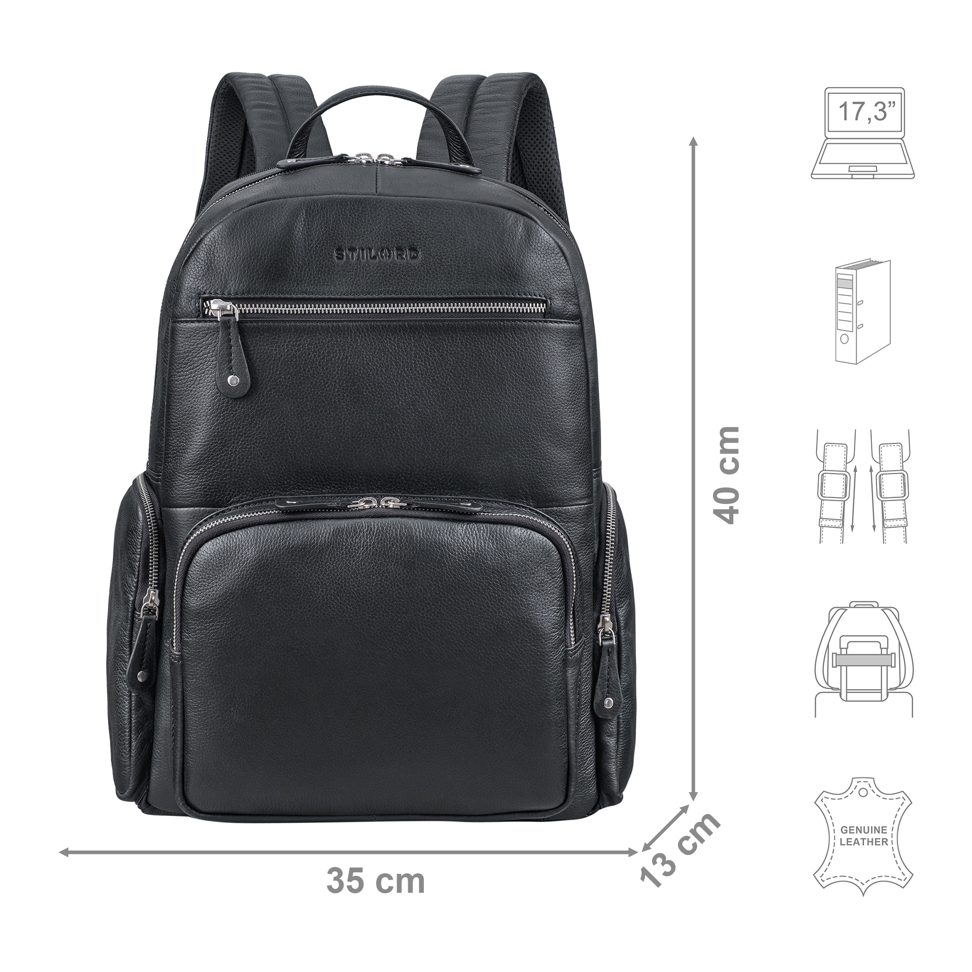 - Abmessungen (LxBxH): 35 x 13 x 40 cm | Gewicht: 1140 Gramm | Material: Rindsleder | Modell: Talvi | Marke: STILORD