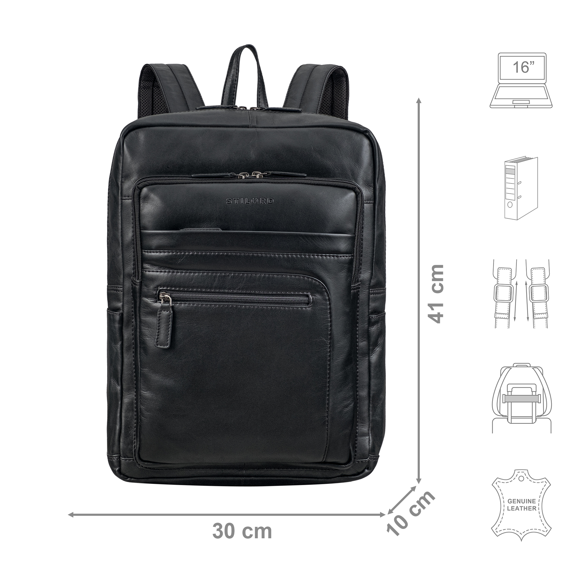 - Abmessungen (LxBxH): 30 x 10 x 41 cm | Gewicht: 1190 Gramm | Material: Rindsleder | Modell: Gilbert| Kompatibilität: Laptop Rucksack 15 Zoll bis 16 Zoll (gepolstert), breite DIN A4 Akten-Ordner
