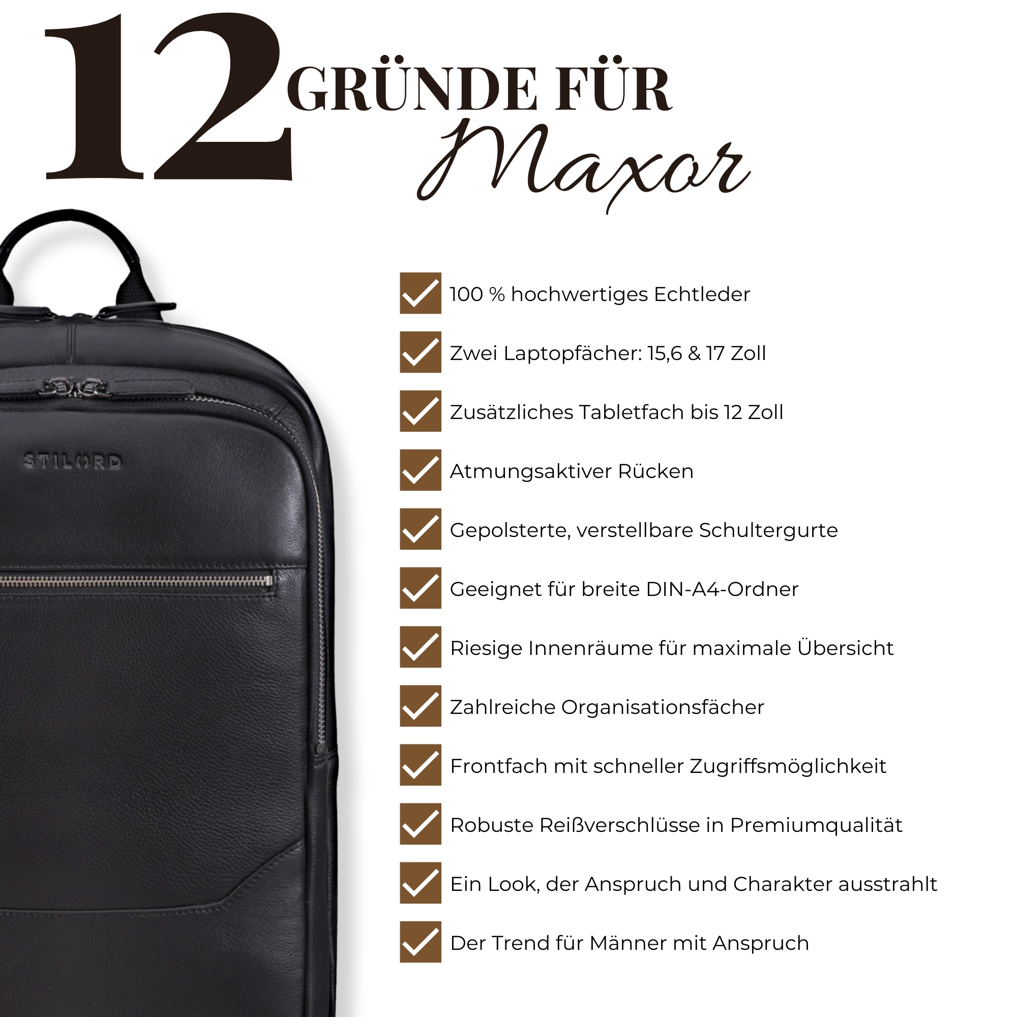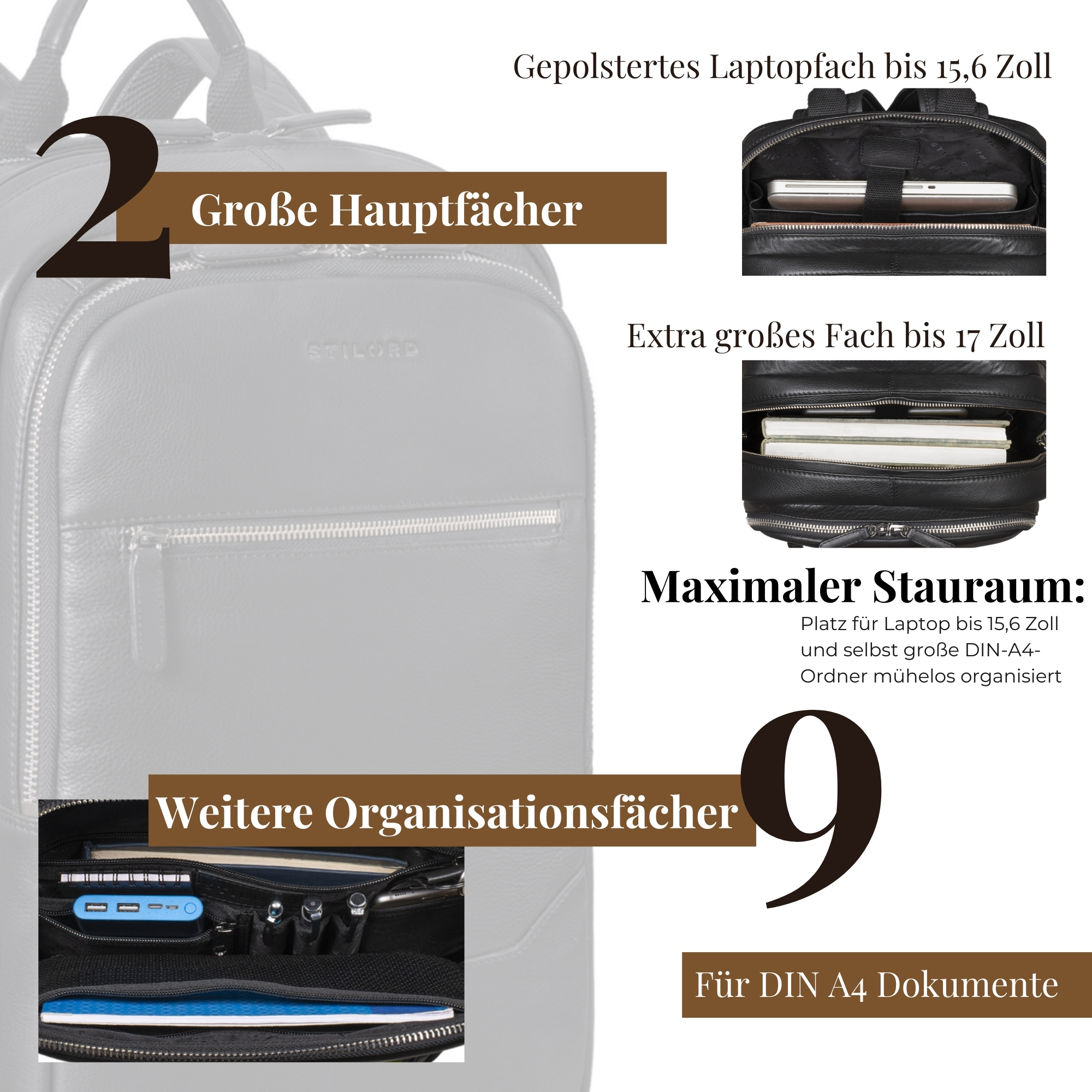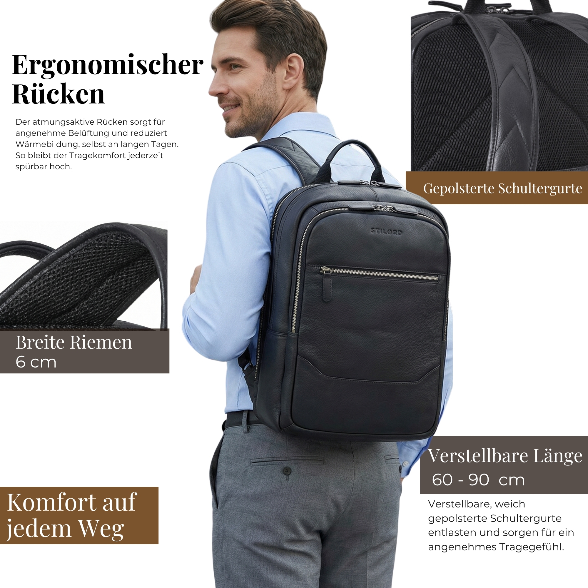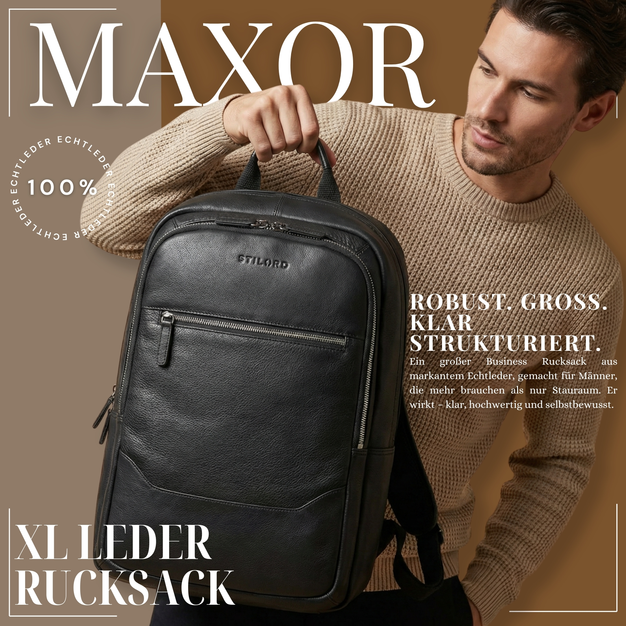 STILORD "Maxor" Großer Business Lederrucksack Herren mit 2 Laptopfächern